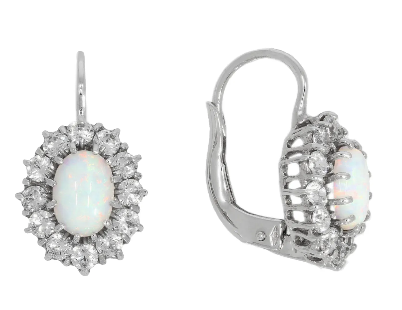 Tieto rozprávkovo krásne náušnice z bieleho zlata z Vás razom spravia kráľovnú. Nádherný opál v kombinácií s trblietavými zirkónmi po jeho obvode vytvára elegatný dizajn. Náušnice zhotovené z bieleho 14k zlata sú vhodné tiež ako dar.