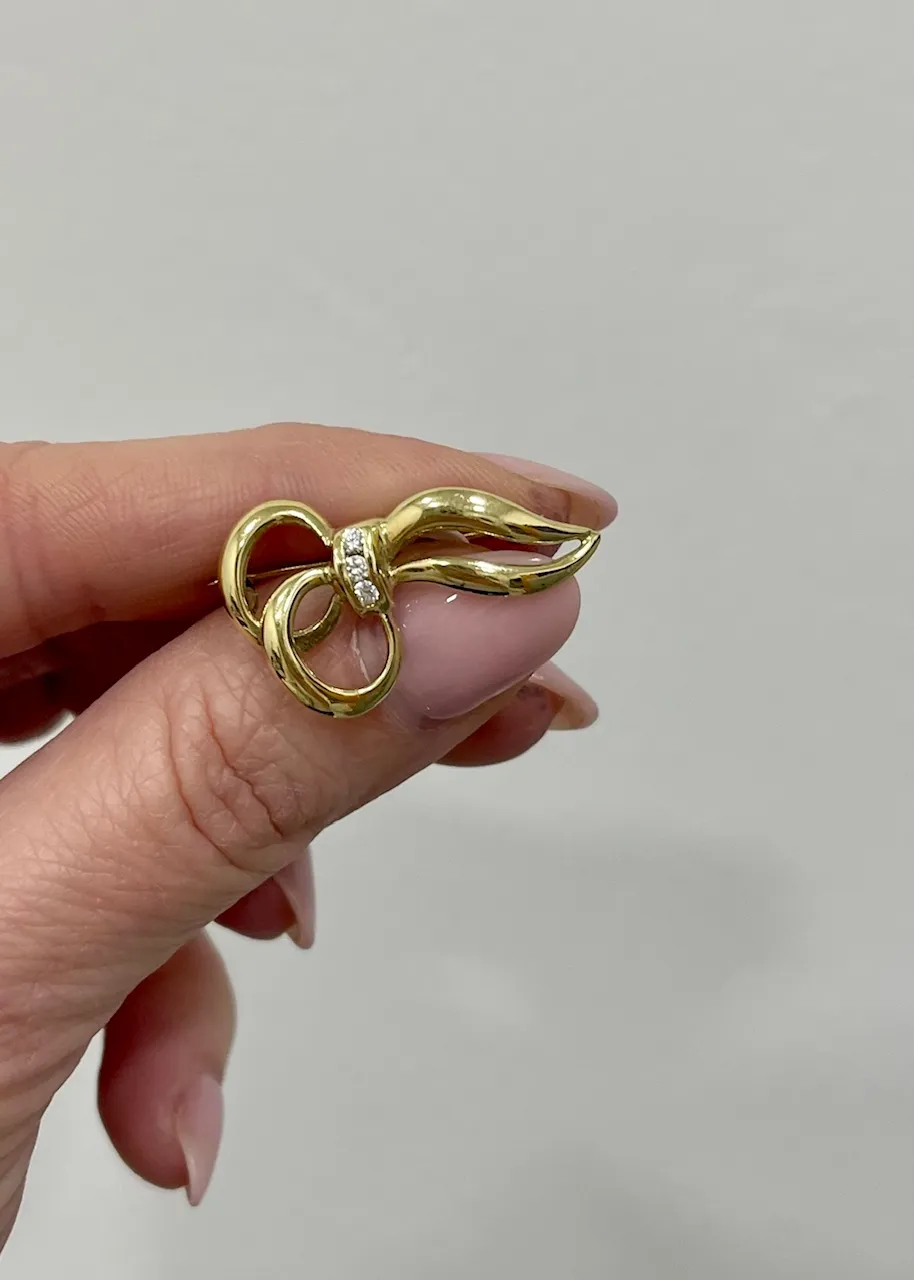 Dámy, ktoré uprednostňujú eleganciu zaručene poteší krásna zlatá brošňa. Zdobená je bielymi zirkónmi.