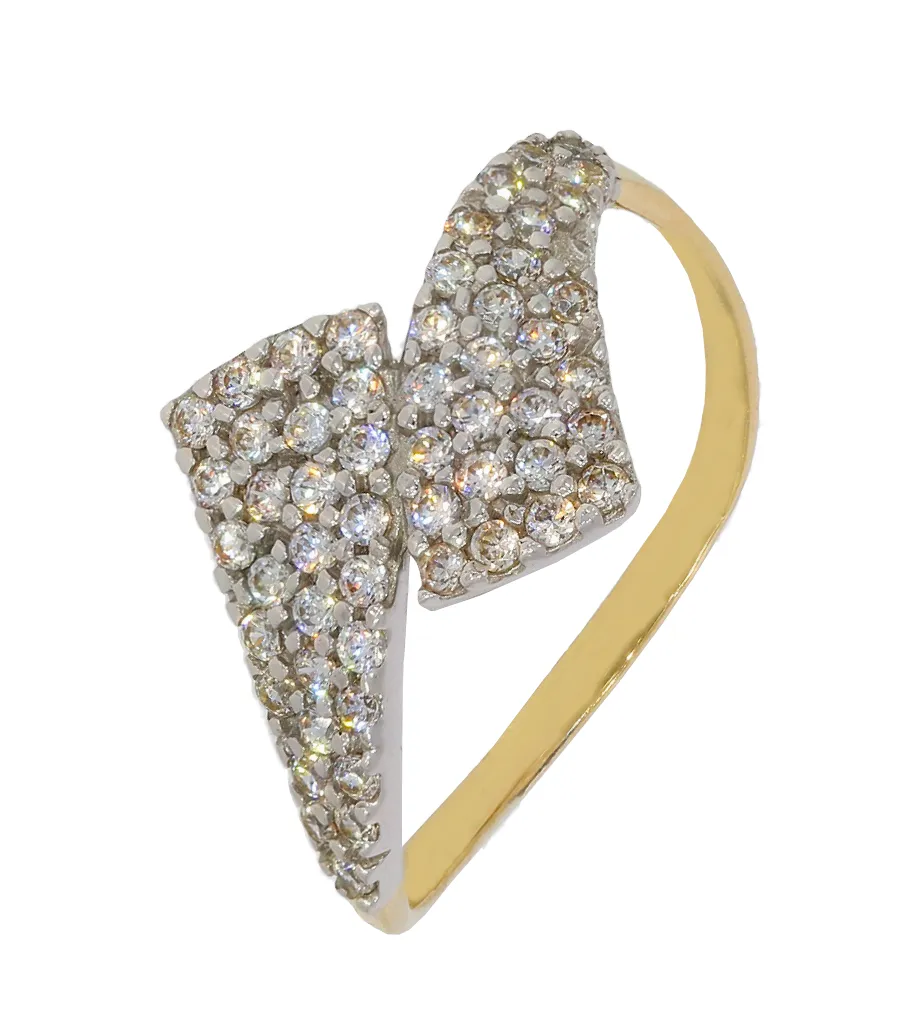 Veľmi pekný, elegantný dámsky prsteň vyrobený zo žltého 14 karátového zlata. Šperk zdobí množstvo bielych zirkónov a je vhodný tiež ako darček pre dámy.