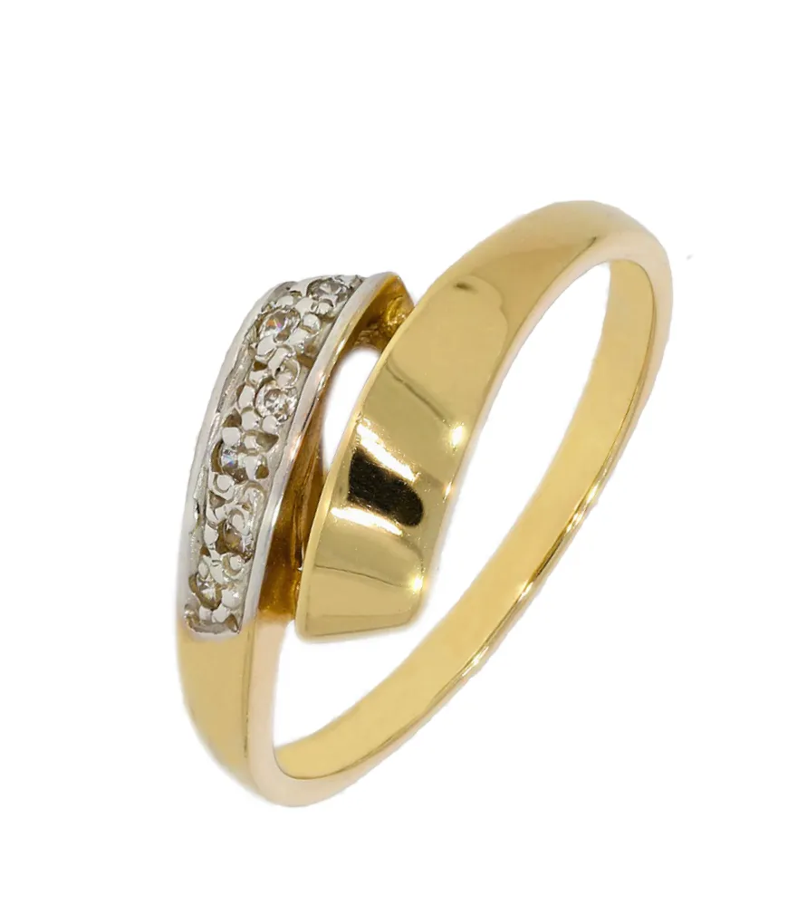 Veľmi pekný prsteň vyrobený žltého a bieleho 14 karátového zlata. Šperk má hladký, lesklý povrch a je vhodný tiež ako darček pre dámy.