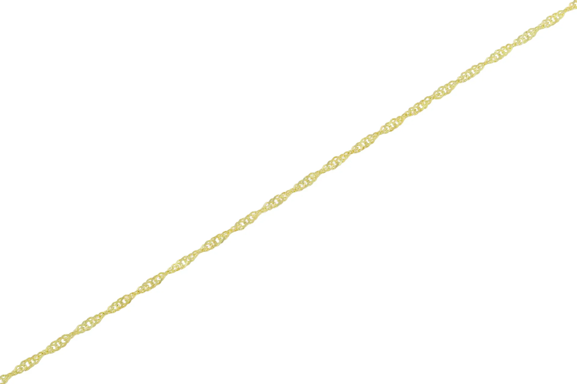 Nežný náramok zo žltého zlata poteší každú dámu, ktorá uprednostňuje jemné šperky. Vyrobený je zo žltého zlata v točenom motíve. Zapínanie má tvar pérového krúžku.