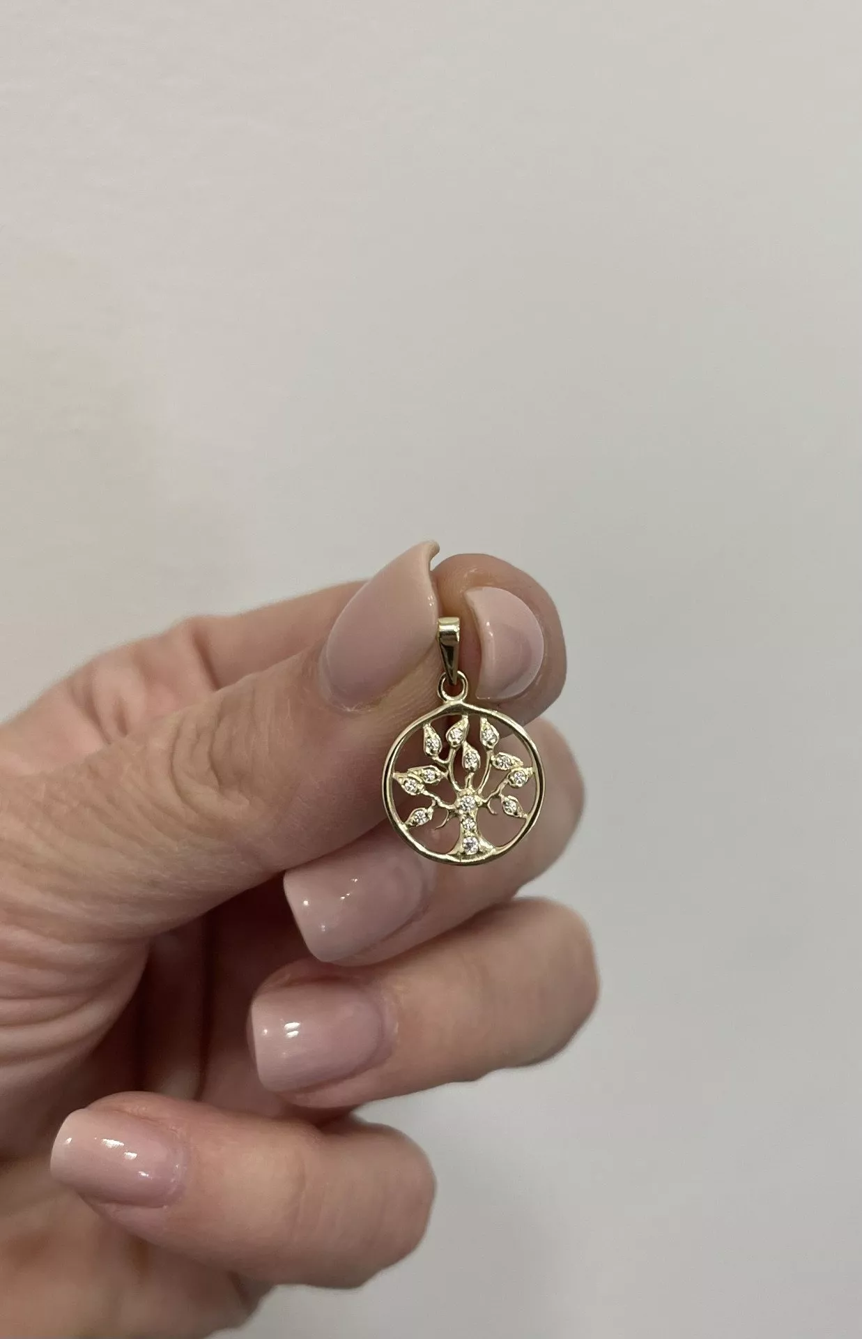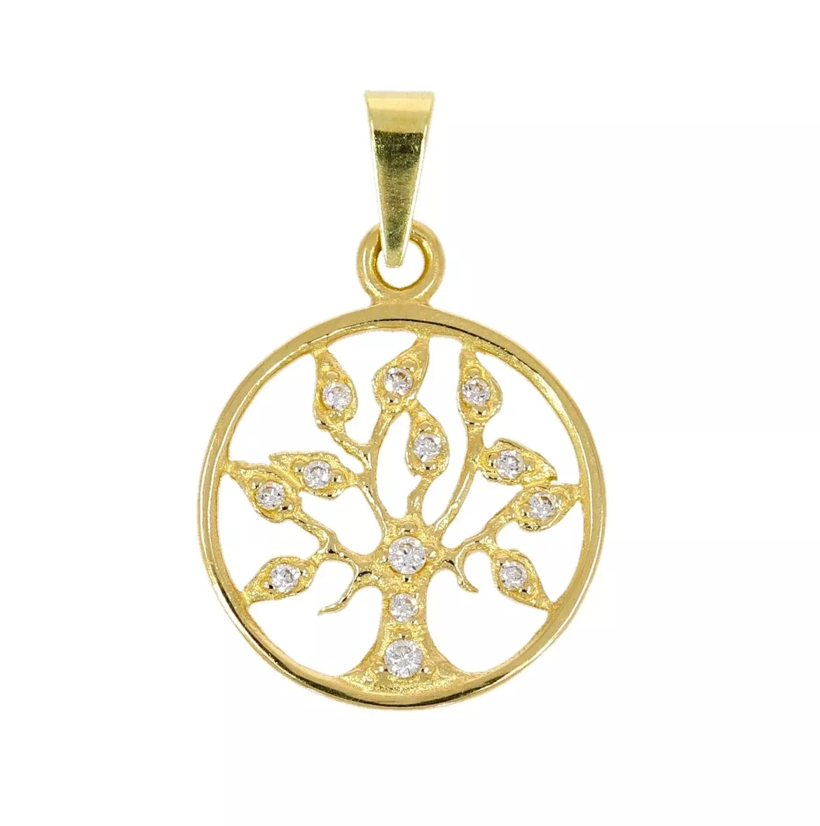 Moderný, elegantný zlatý prívesok v tvare stromu života zaujme Vás aj Vaše okolie. Hladká, lesklá povrchová úprava je doladená trblietavými zirkónmi.