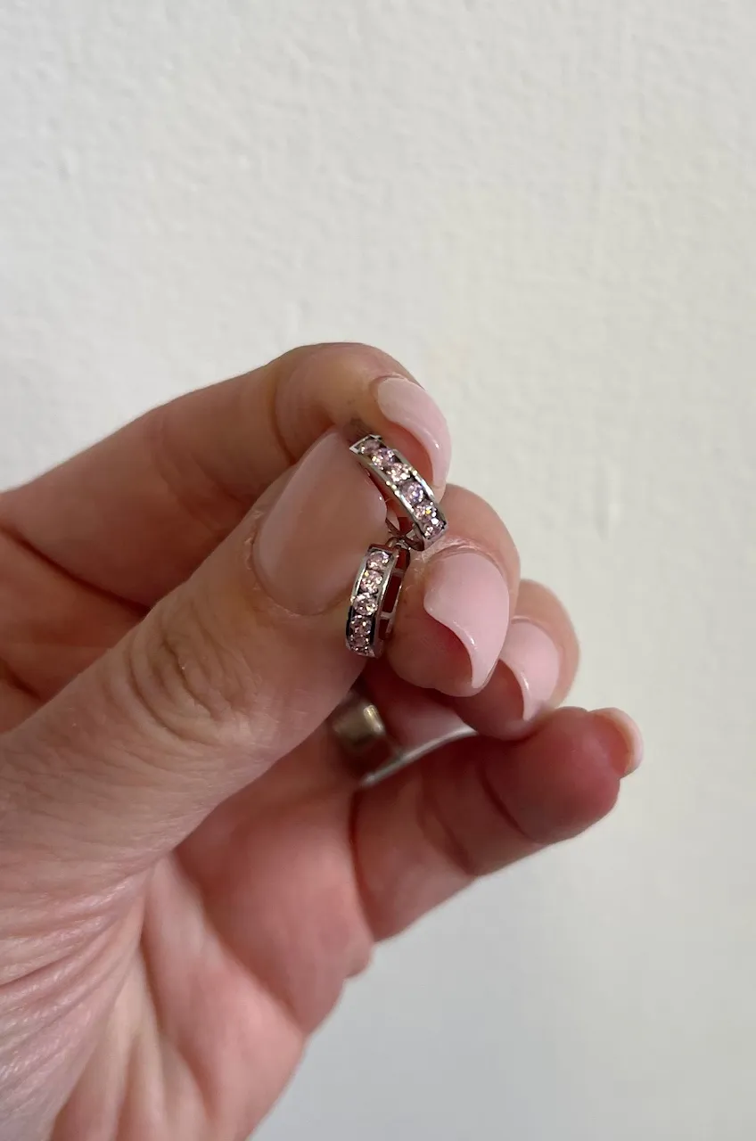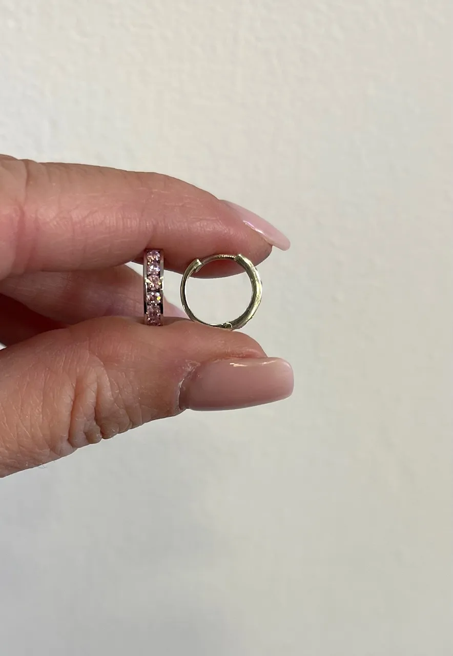 Pekné náušničky z bieleho zlata zdobené ružovými zirkónmi z prednej strany.