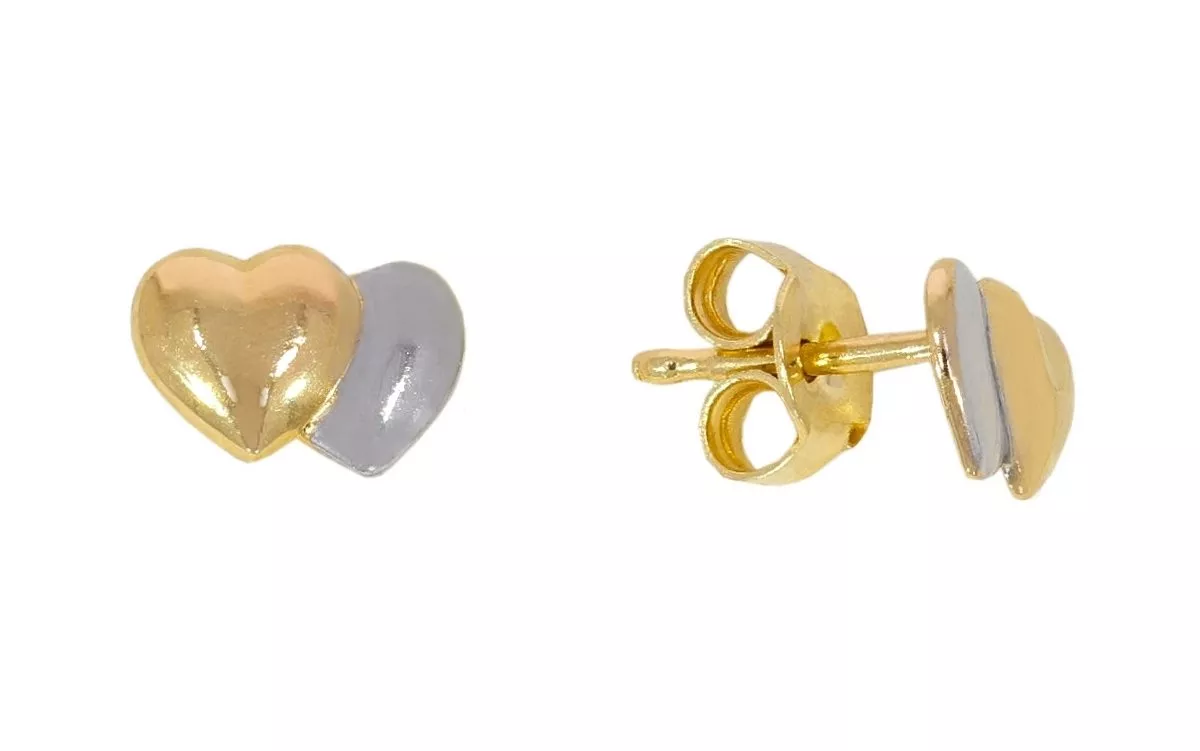 Skutočne veľmi pekné, nežné zlaté náušnice vyrobené kombináciou žltého a bieleho zlata s lesklou povrchovou úpravou. Náušnice sú vyrobené v tvare srdiečok, ktoré zaručene potešia každú romantickú dušu.