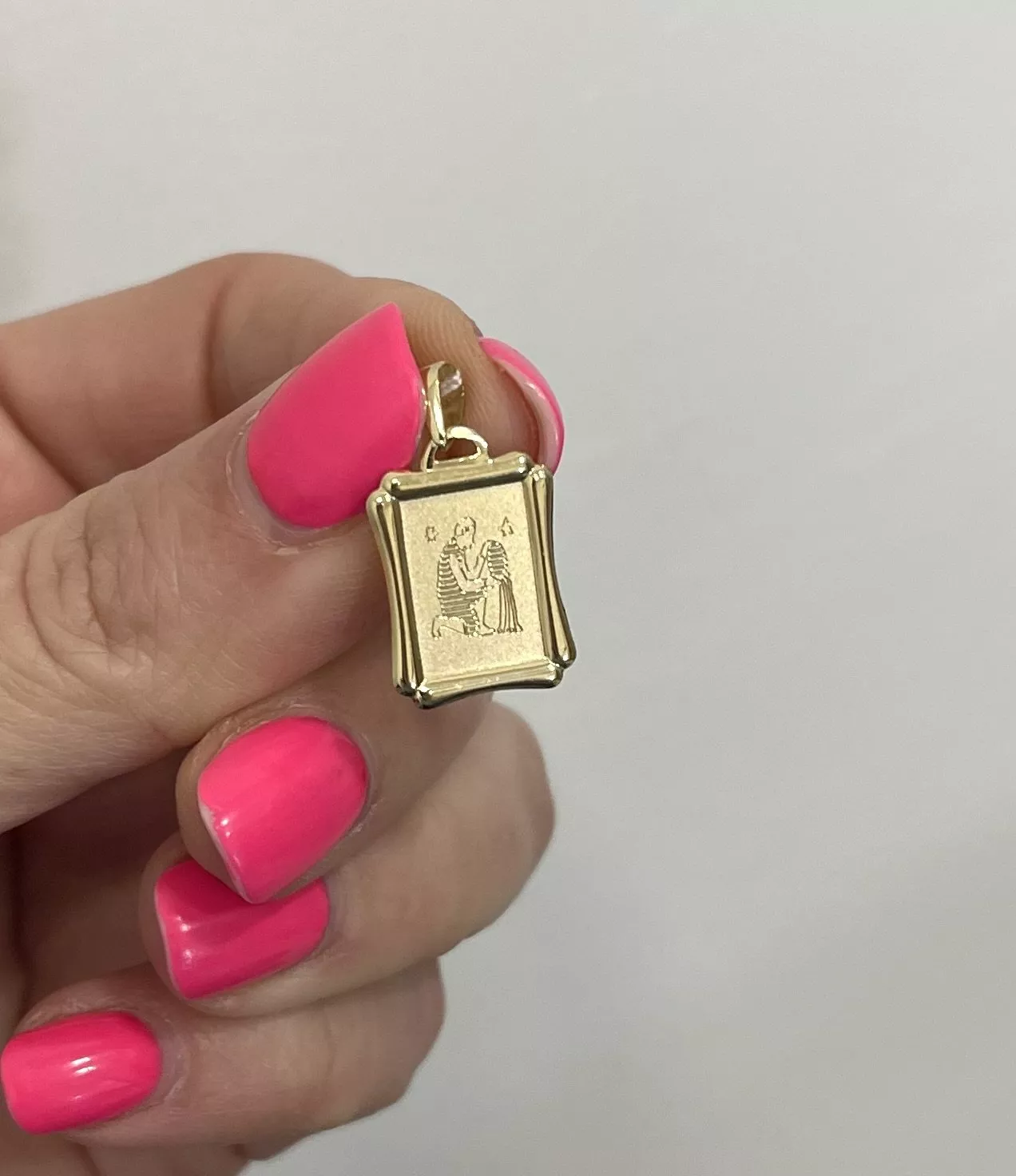 Zlatý prívesok v obdĺžnikovom tvare má po krajoch hrubšie ozdobné lemy. Na zlatej platničke je vyobrazený motív znamenia Vodnár, ktorý je vhodný pre ľudí narodených v období 21.01. - 20.02..