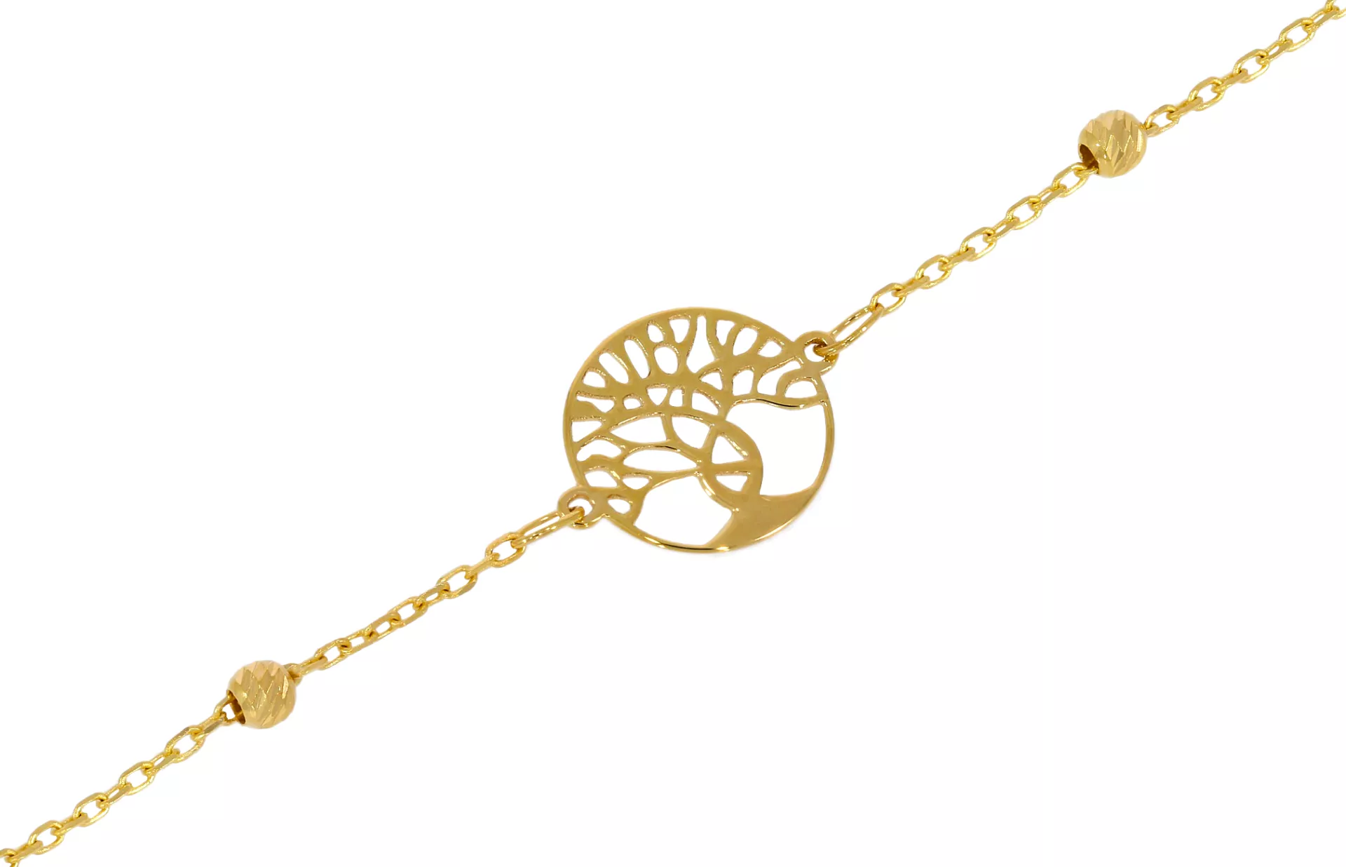 Darujte zlatý náramok s obľúbeným motívom stromu života (10mm). Náramok má nastaviteľnú dĺžku od 17cm do 20cm a zapínanie v tvare spoľahlivého pérového krúžku.