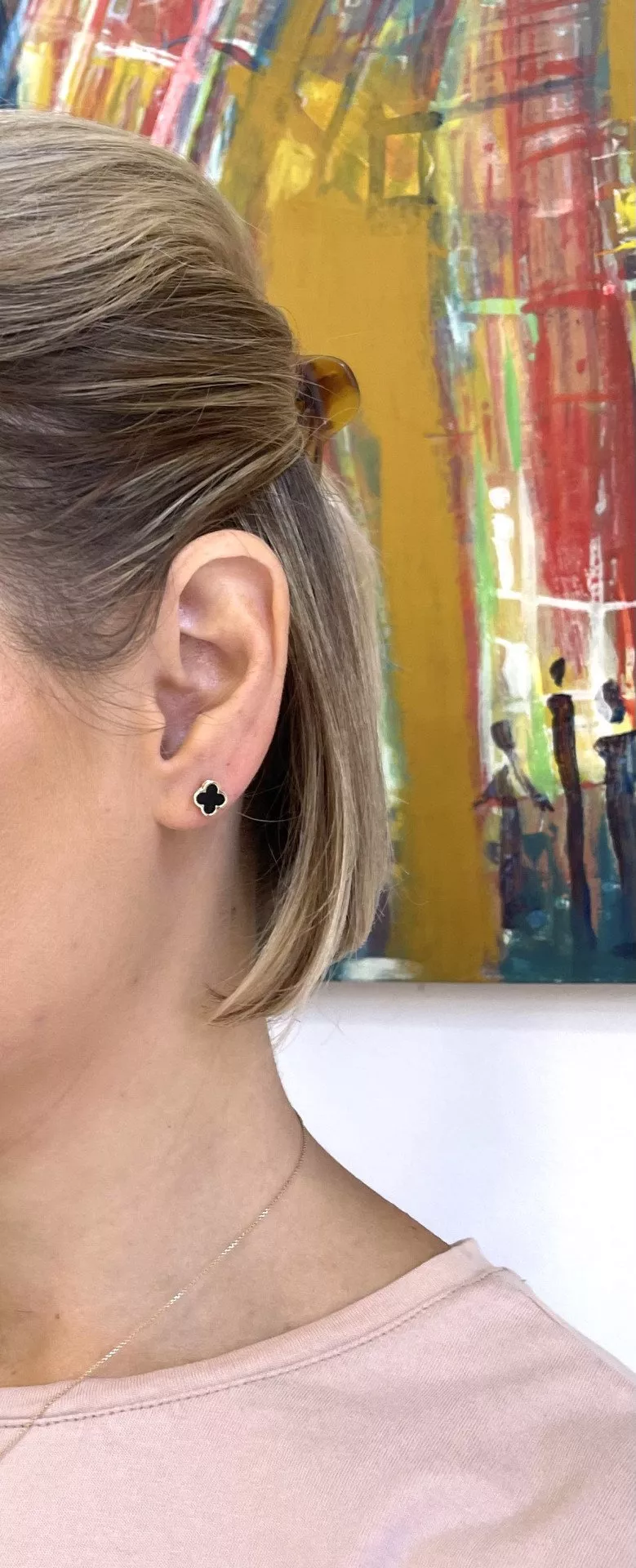 Darujte jedinečné zlaté náušnice, ktoré zaručene potešia každú milovníčku šperkov. Vyrobené sú zo žltého 14k zlata a zdobia ich čierne kamienky.