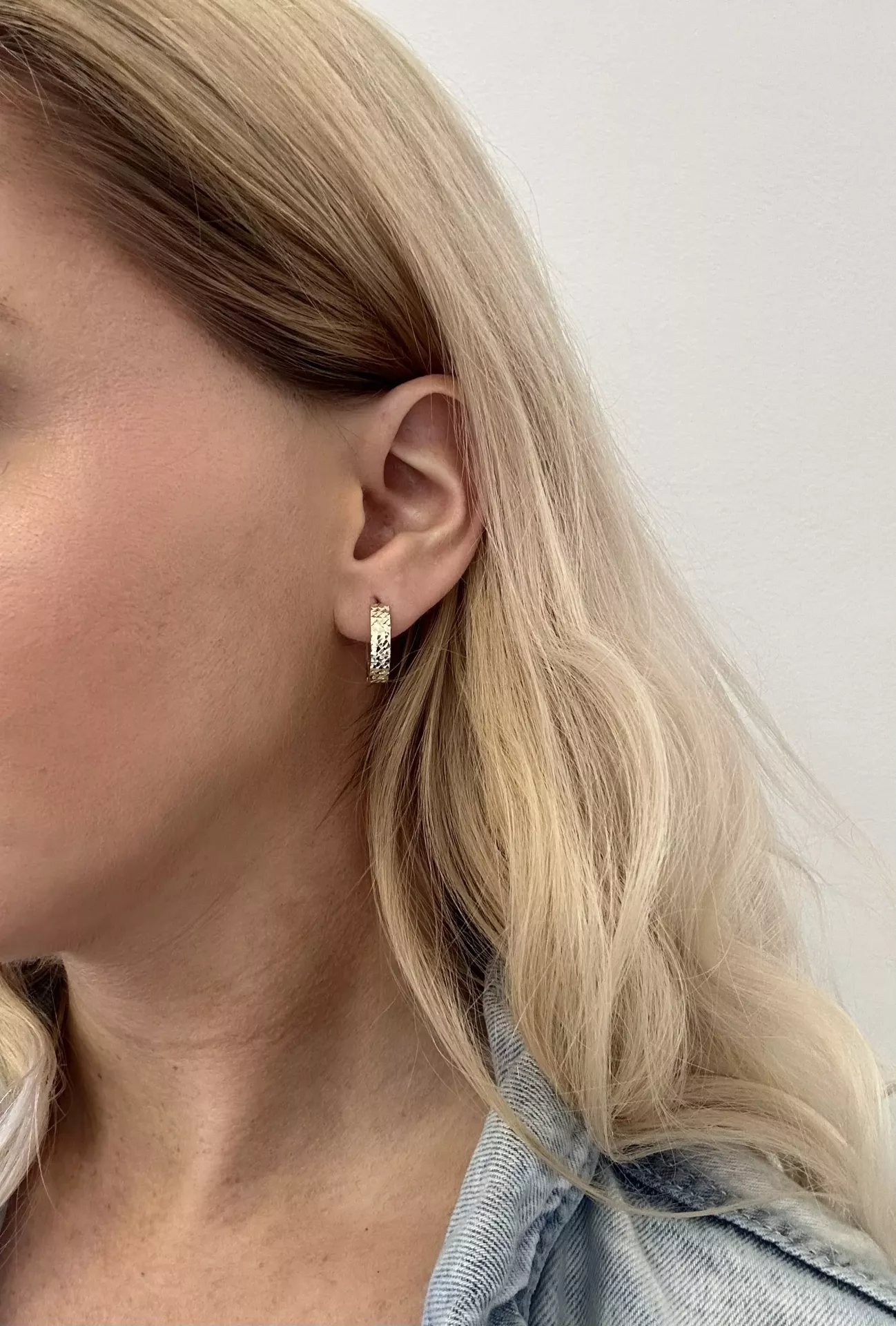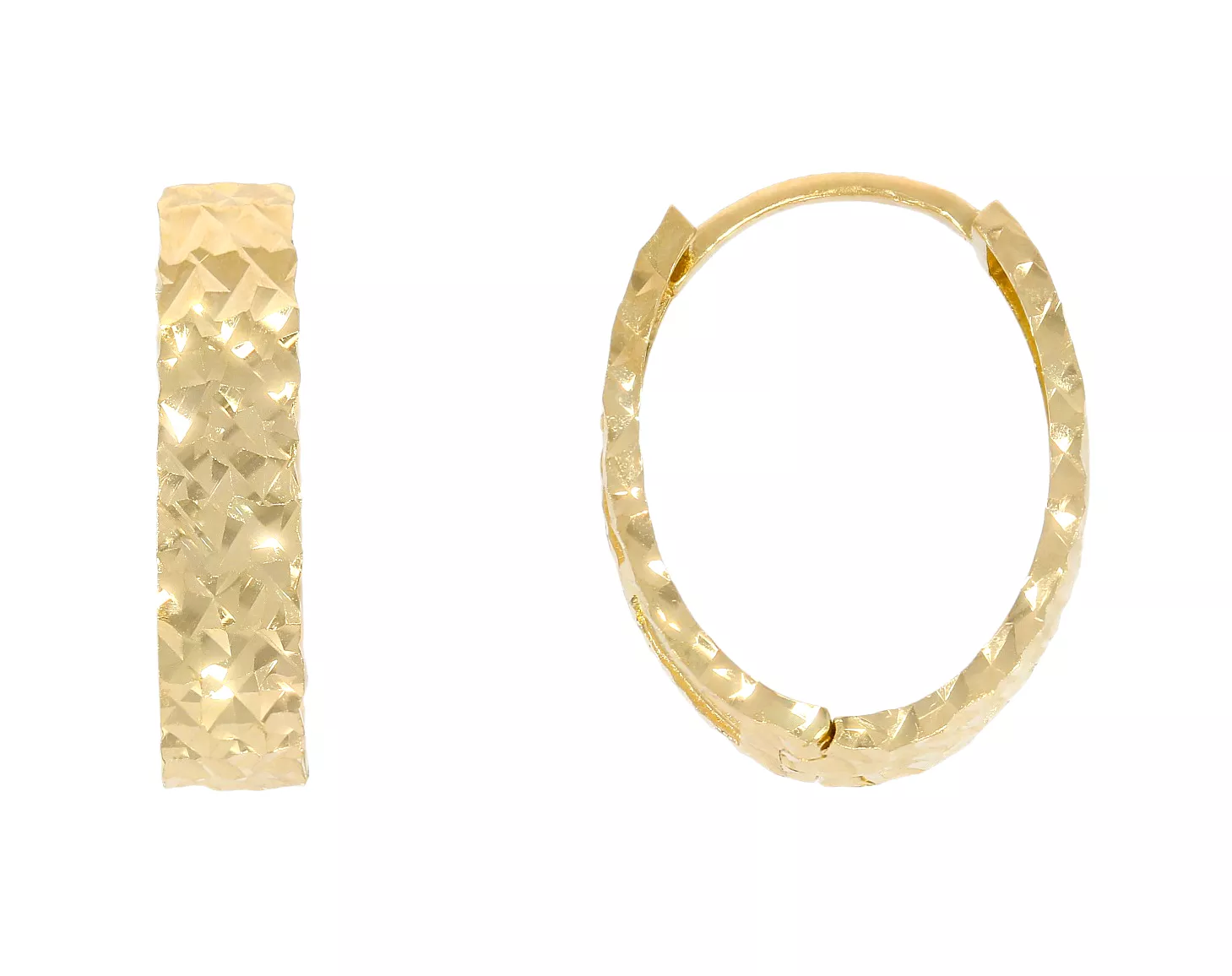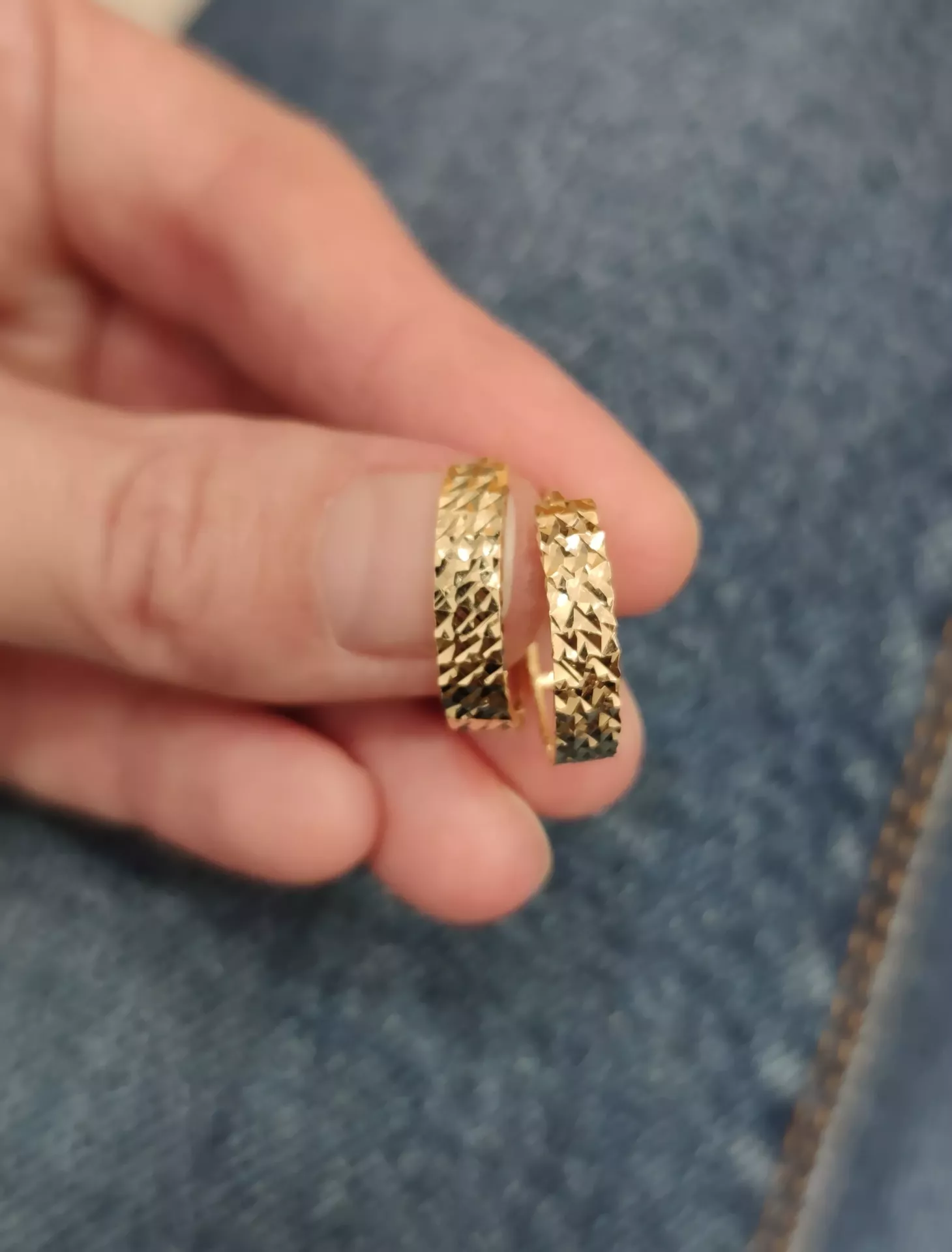 Dokonale trblietavý gravírovaný vzor zdobí oválne zlaté náušnice, ktoré krásne doplnia Váš každodenný outfit. Náušnice sú široké 4mm.