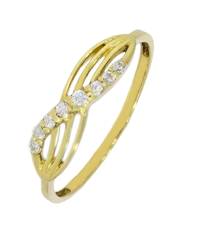 Dámsky zlatý prsteň zdobený zirkónmi.