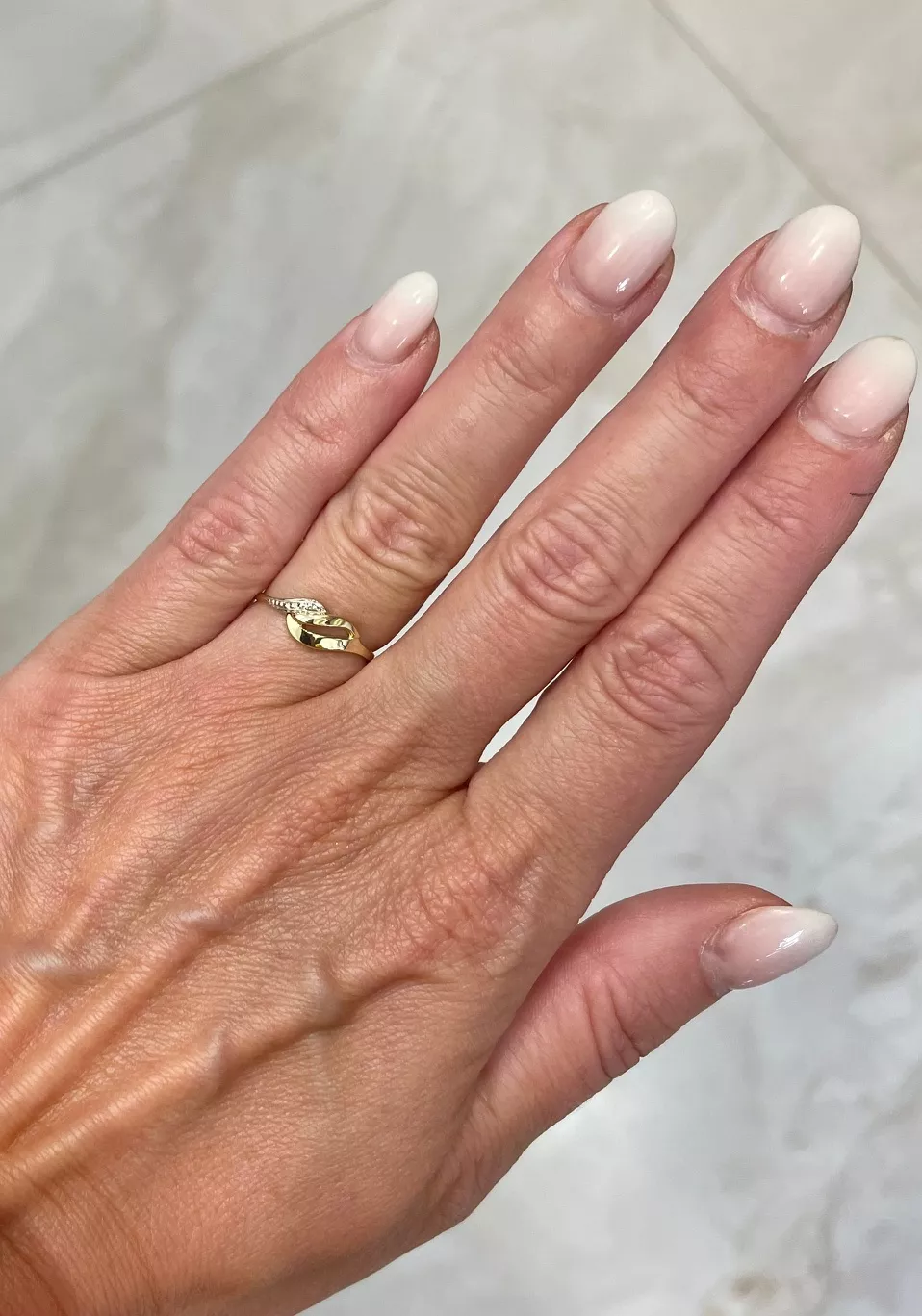 Jemný dámsky zlatý prsteň s pekným dizajnom.