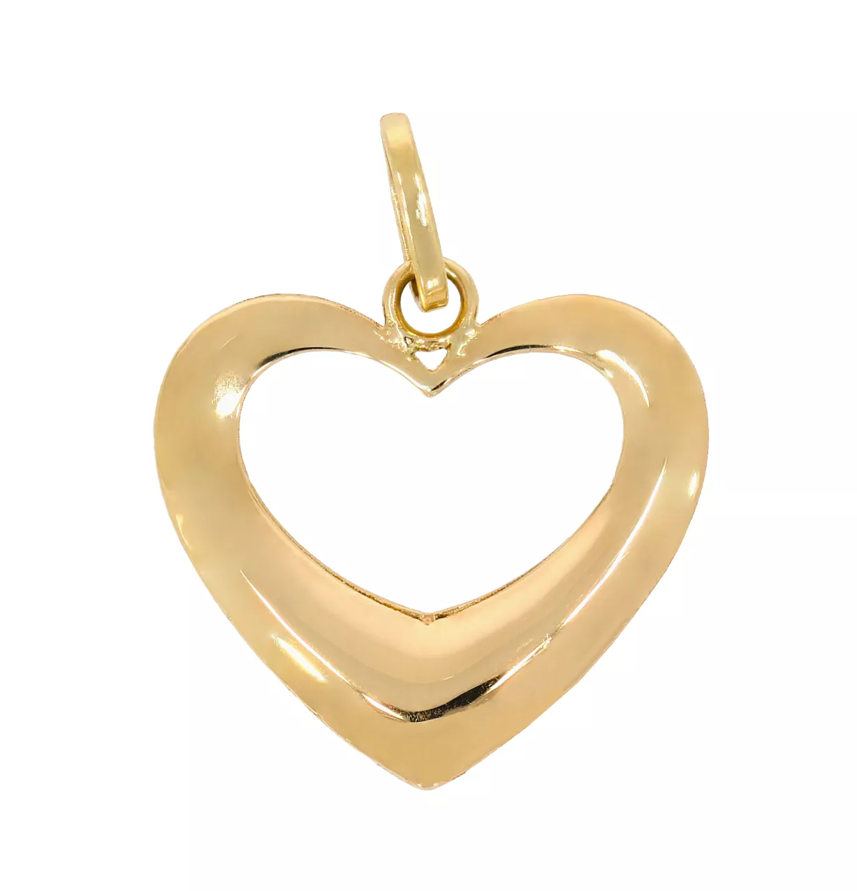 Zlatý prívesok v tvare väčšieho vyrezávaného srdiečka má z jednej strany elegantný vzor a z druhej strany hladký lesklý povrch. Prívesok je možné nosiť z obidvoch strán.