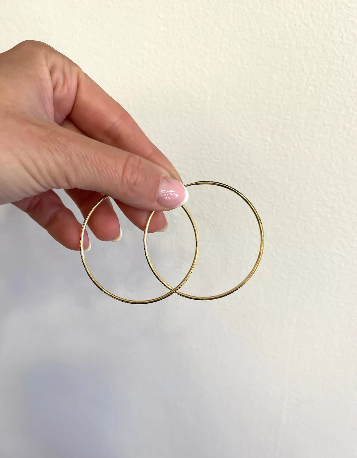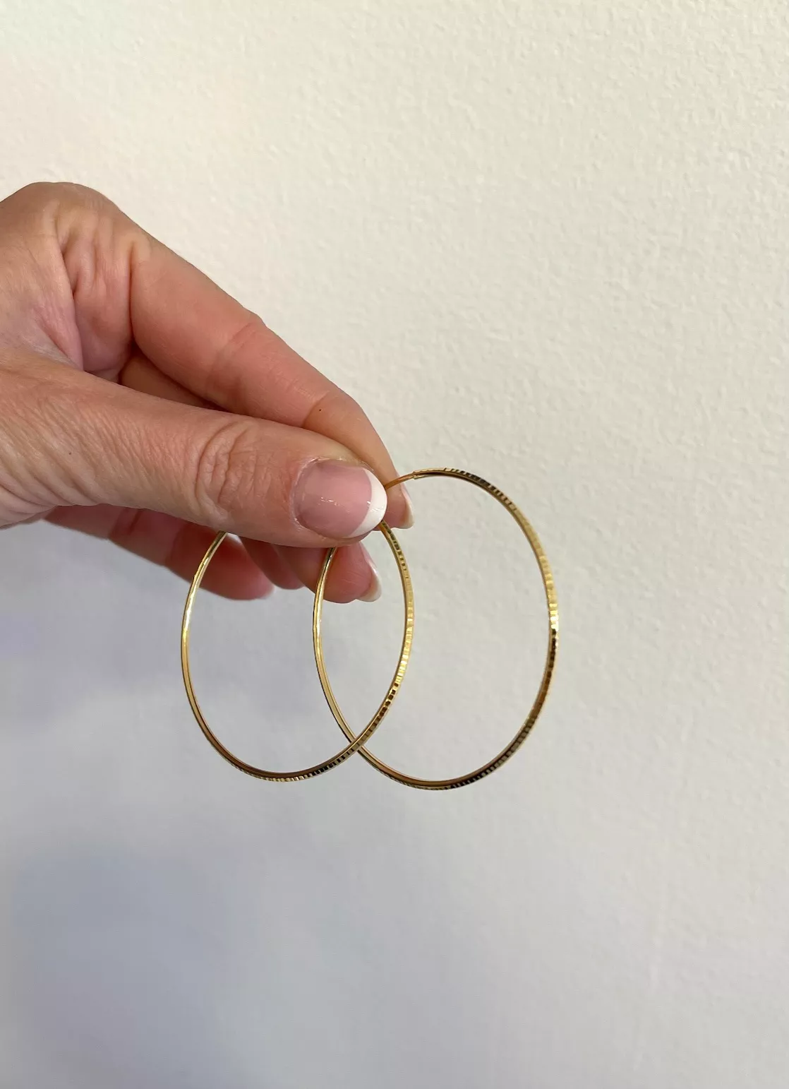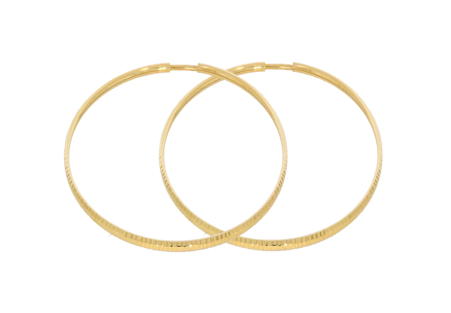 Krásne zlaté kruhové náušnice vyrobené zo žltého zlata zdobené jemným gravírovaným vzorom. Ten dodáva šperku krásny lesk a dotvára jeho celkový dizajn.