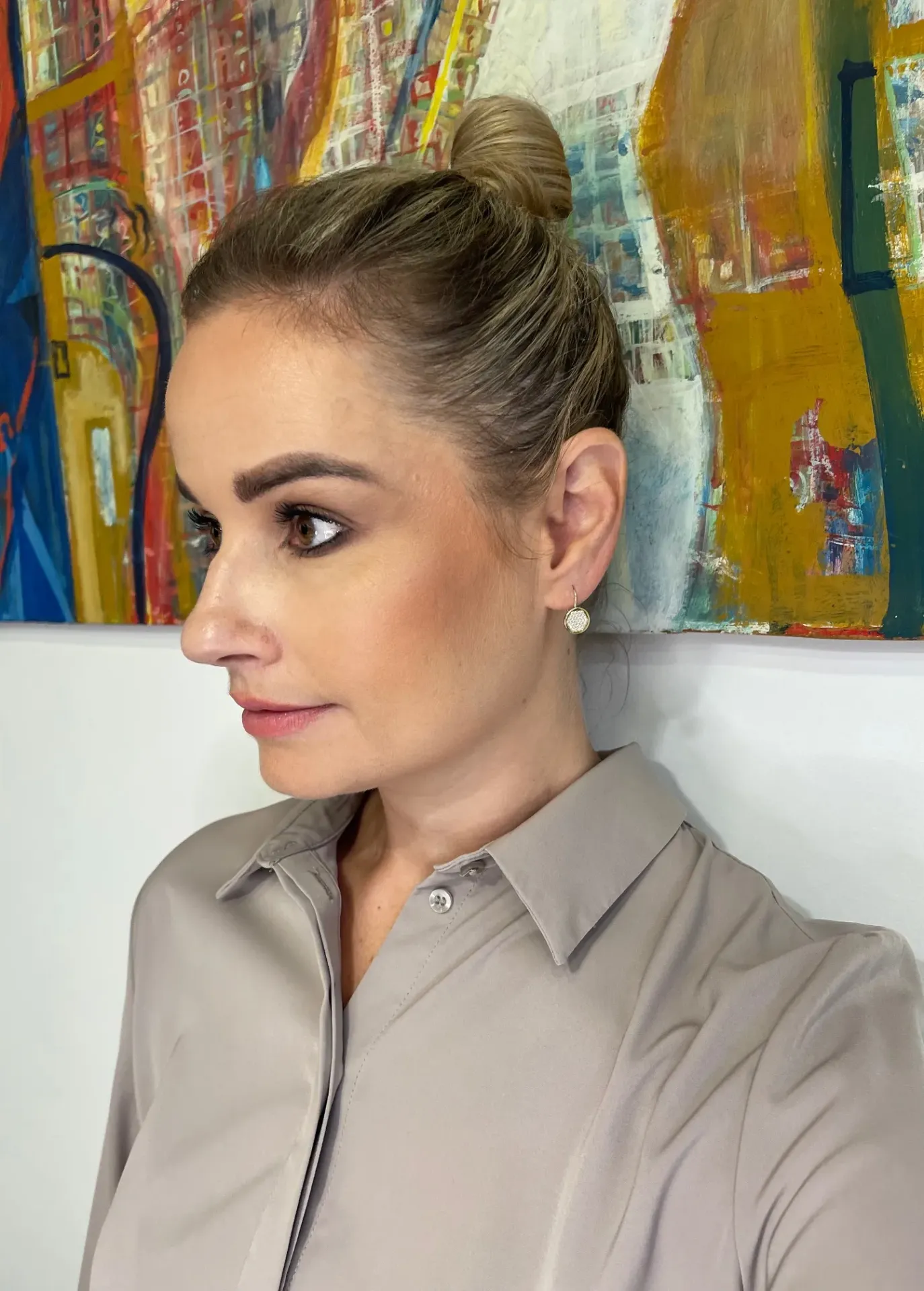 Moderné zlaté náušnice zdobené množstvom bielych zirkónov s klasickým patentovým zapínaním.