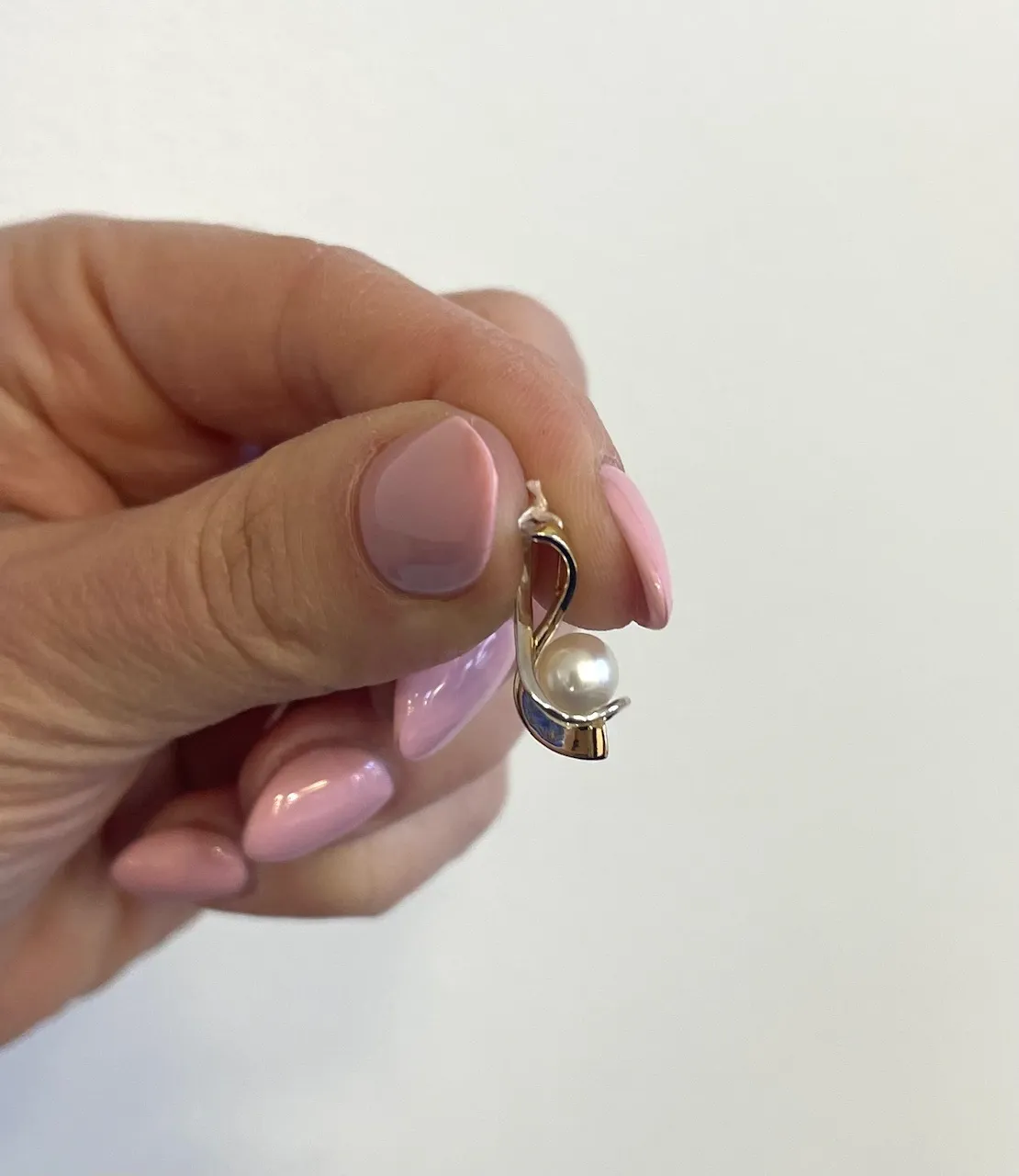 Krásny, elegantný zlatý prívesok vyrobený kombináciou žltého a bieleho 14k zlata je zdobený bielou perlou. Prívesok tvorí krásny pár so Zlatými náušnicami 622.