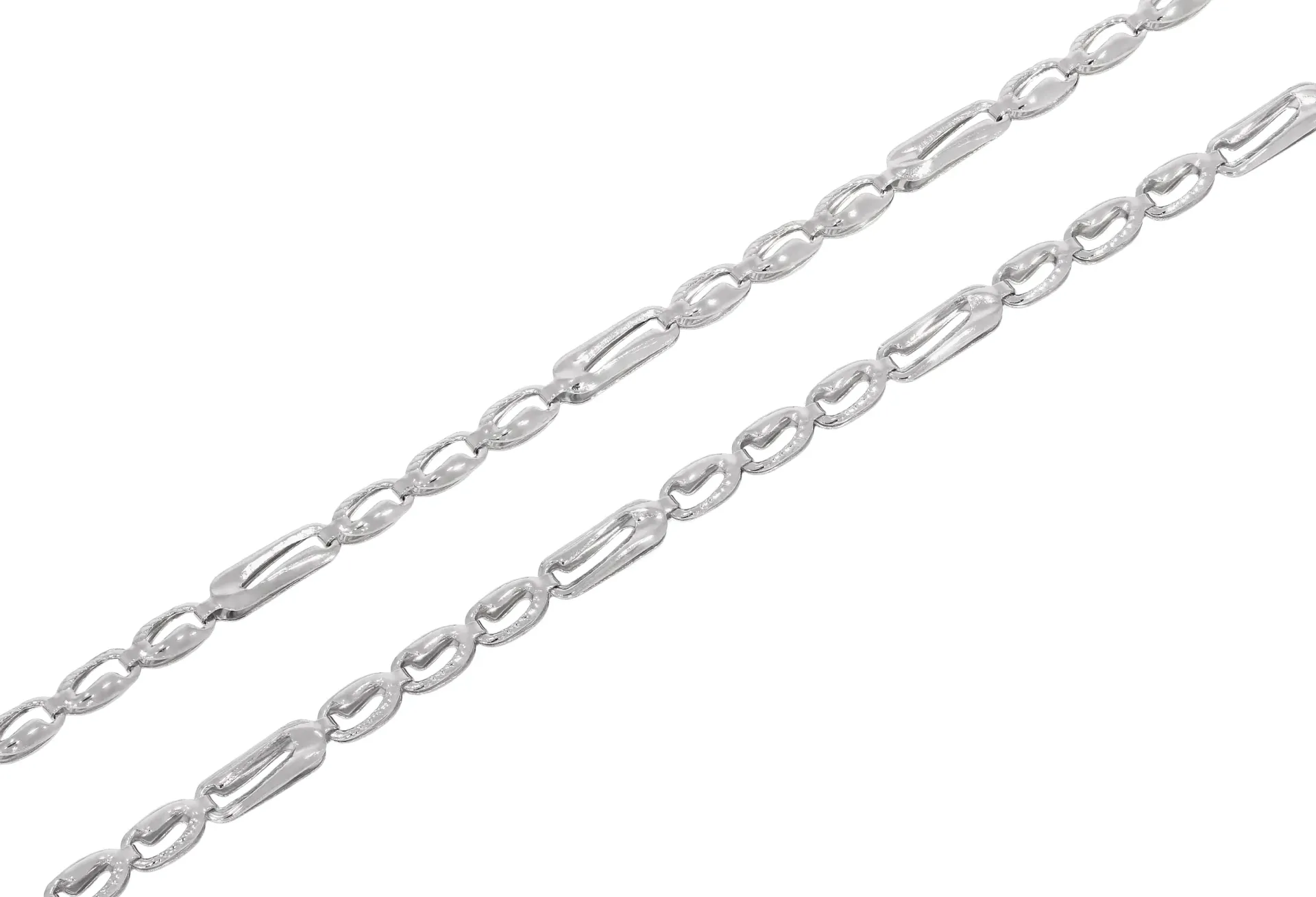 Darujte krásny šperk v podobe modernej retiazky z bieleho zlata. Krátke očká šperku zdobí jemný gravírovaný vzor, ktorý dotvára celkový dizajn šperku. Použité zapínanie má tvar pérového krúžku.