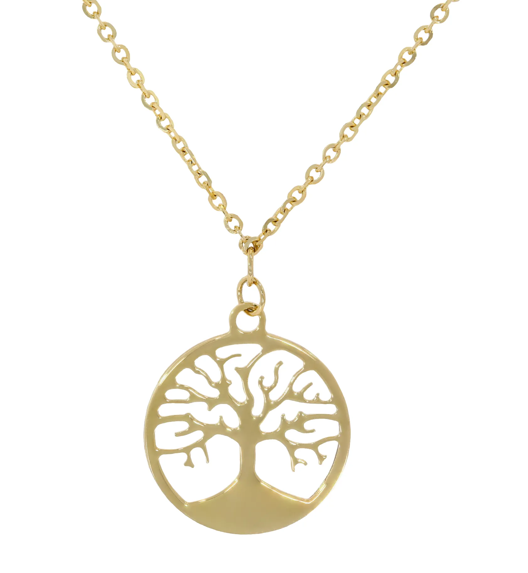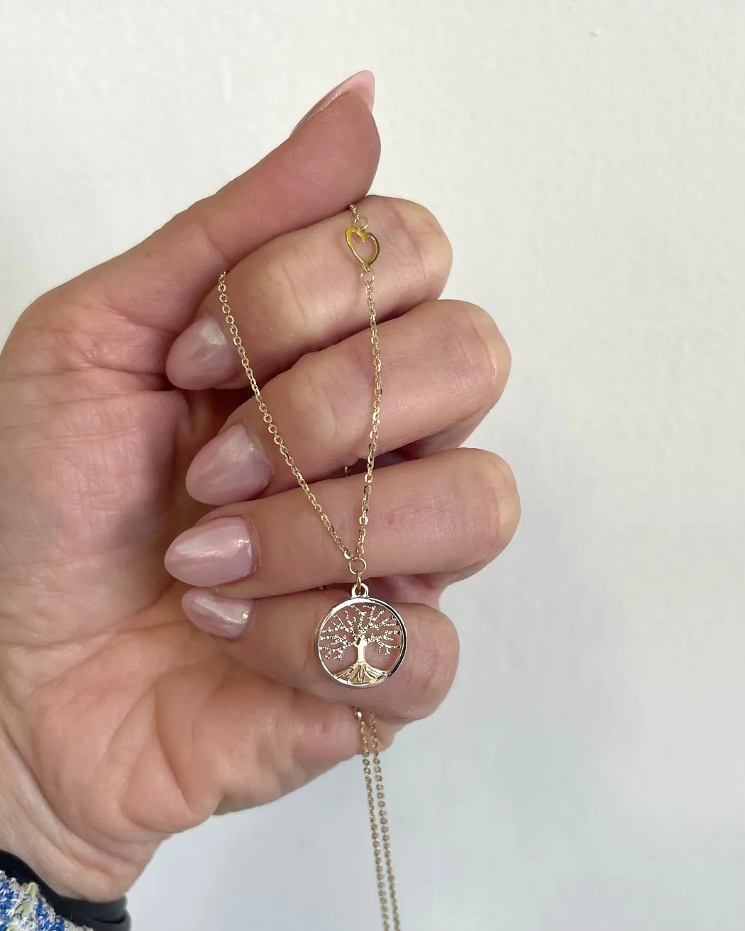 Moderný dámsky zlatý náramok so stromom života a srdiečkami.