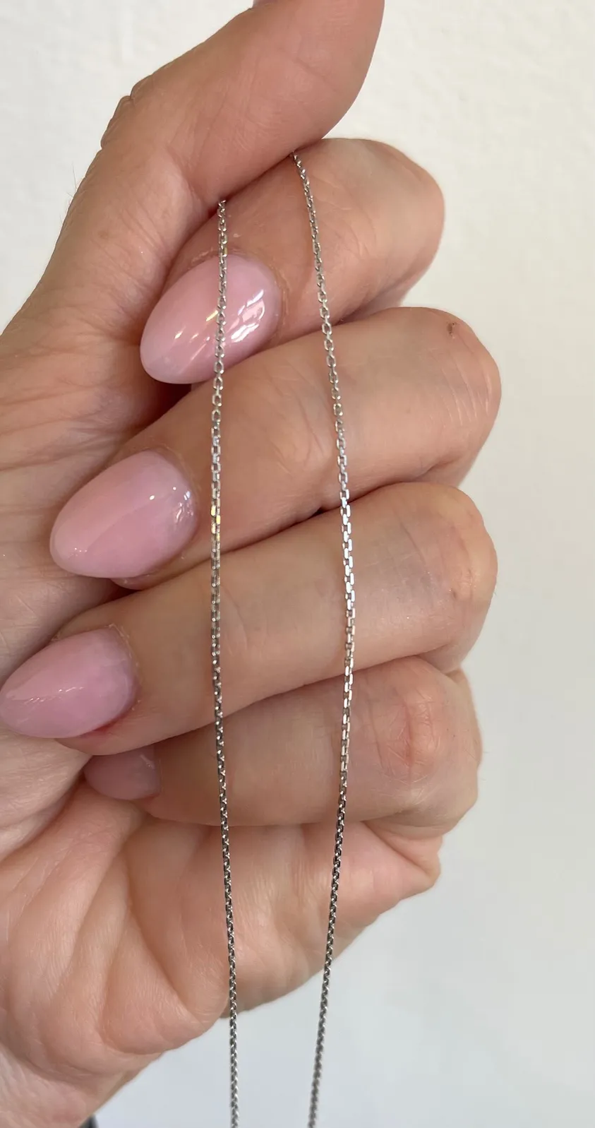 Jemná retiazka z bieleho zlata je vyrobená z drobných hranatých očiek. Tento typ retiazky je vhodný aj na nosenie s príveskom.