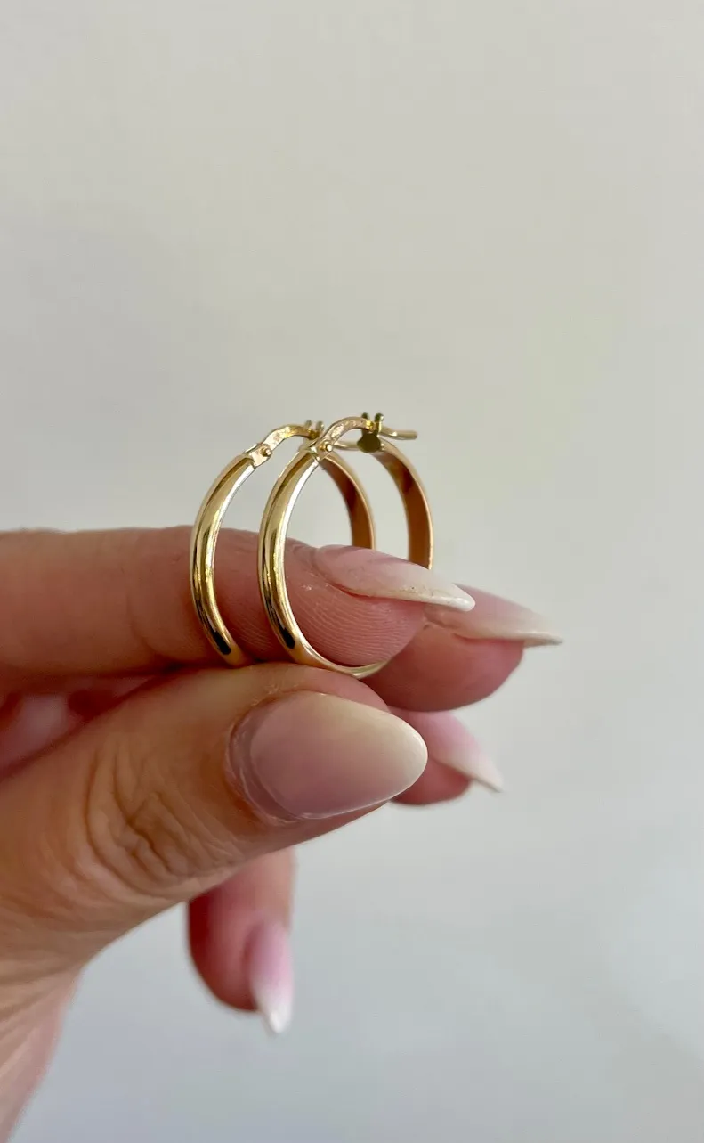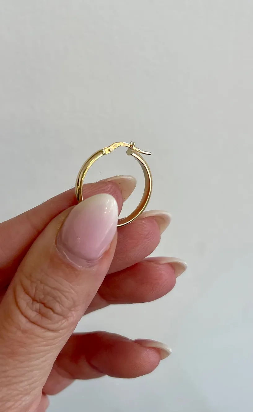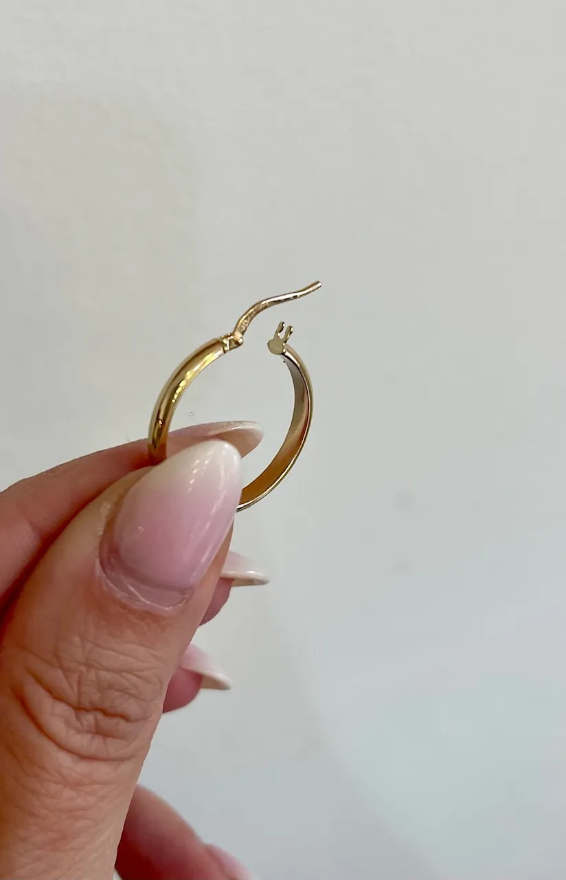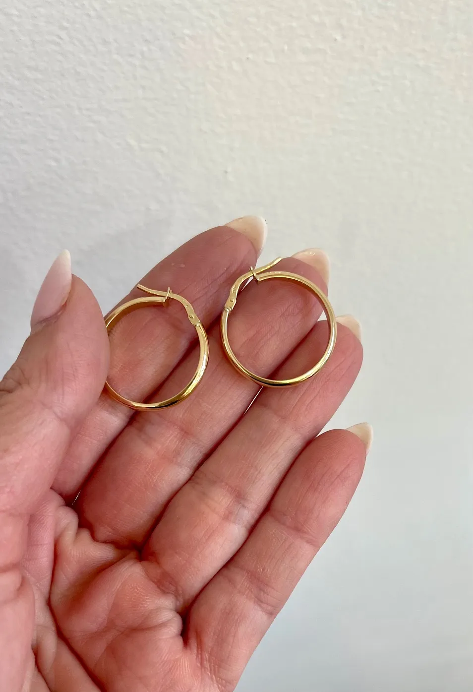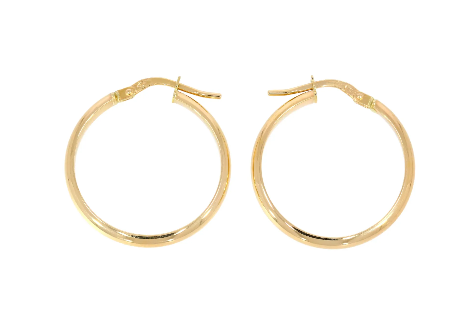 Zlaté kruhové náušnice vyrobené zo žltého 14k zlata s lesklou povrchovou úpravou.
