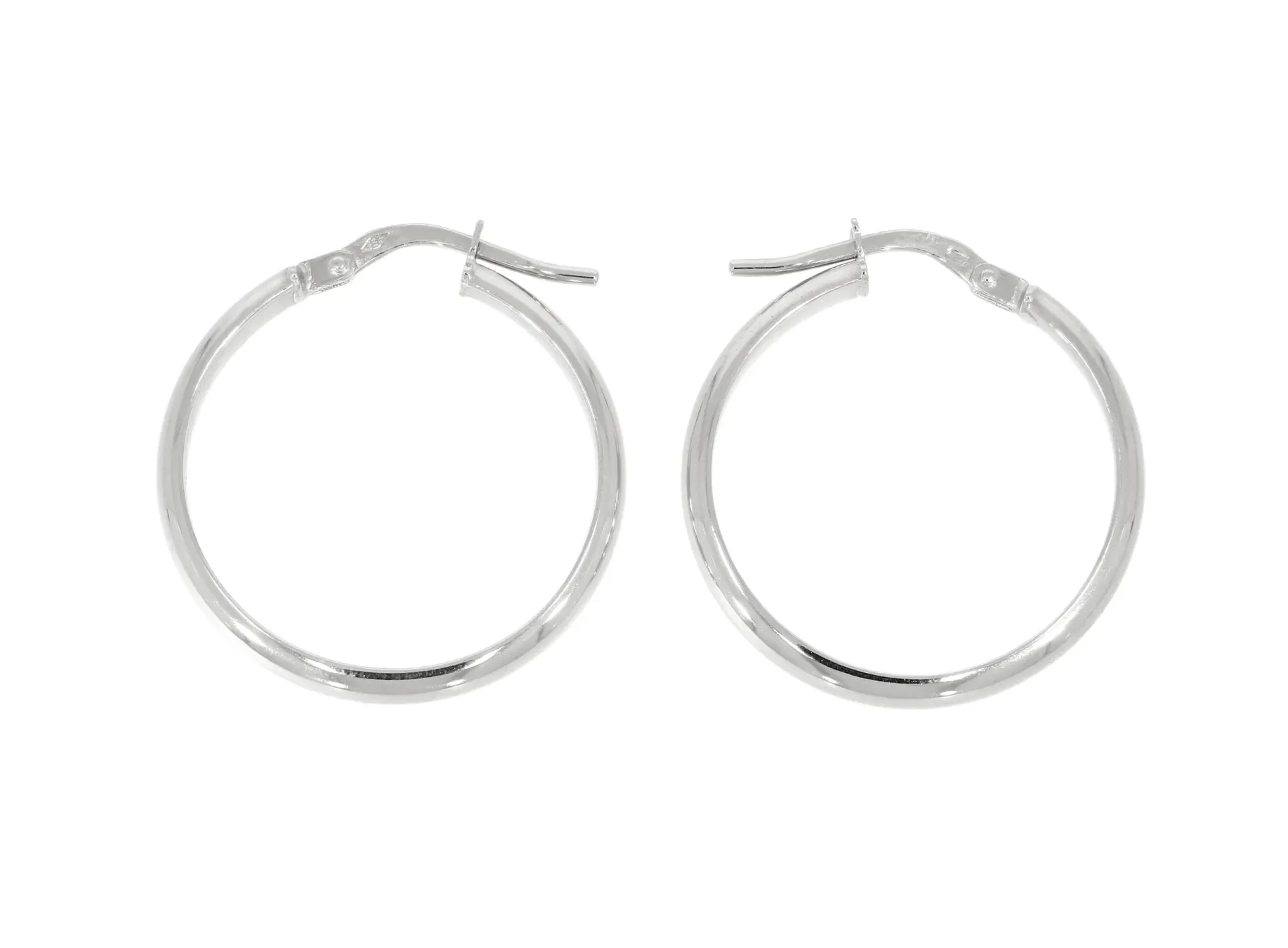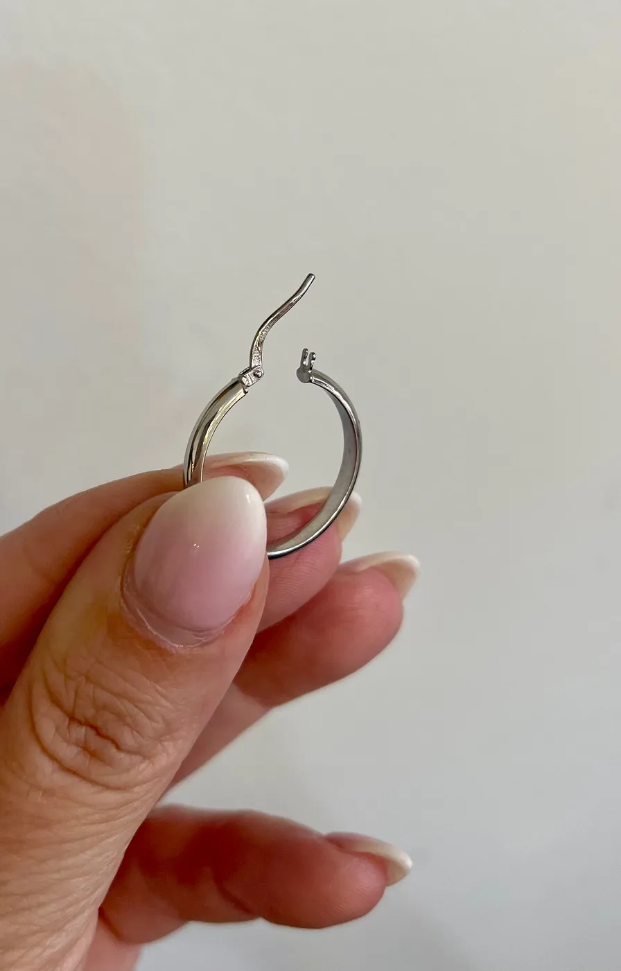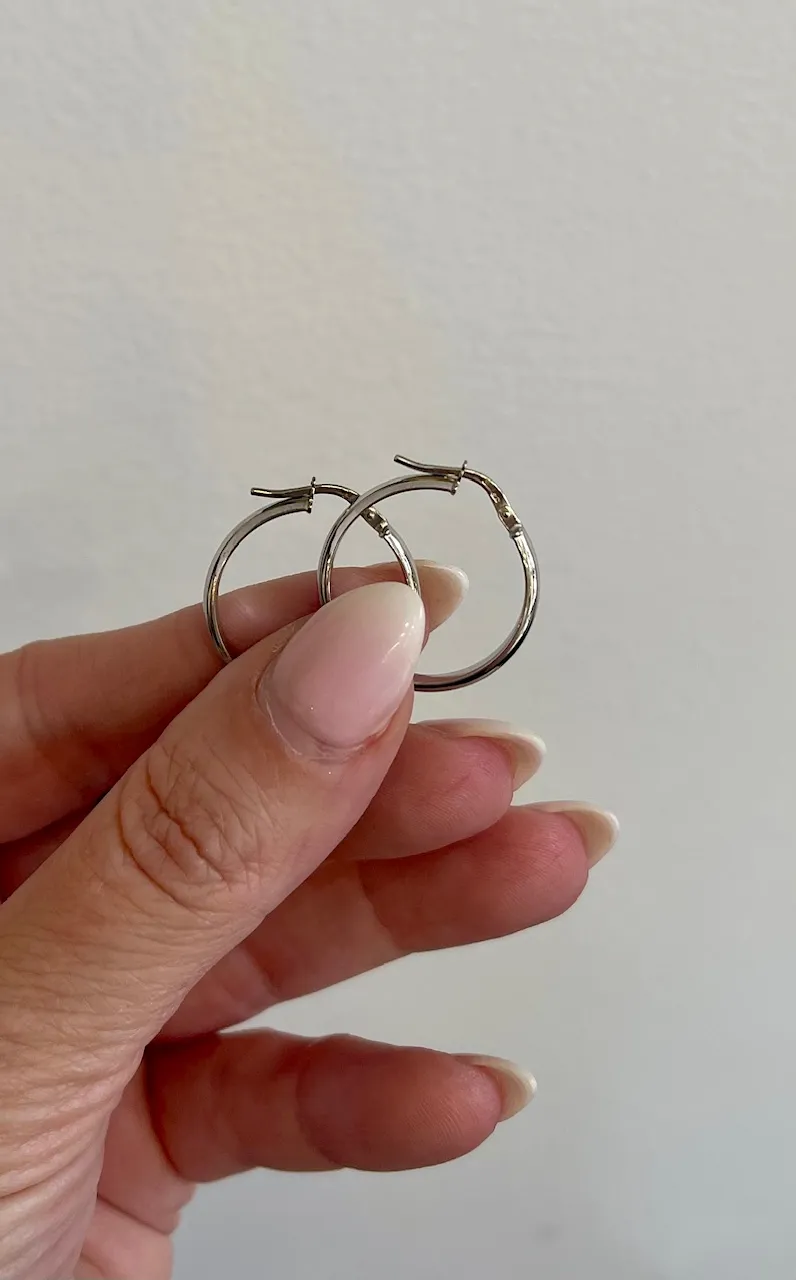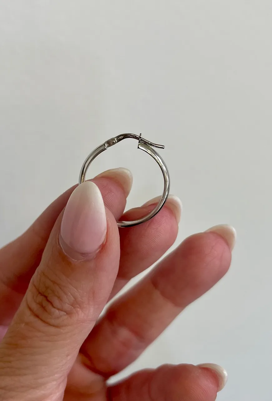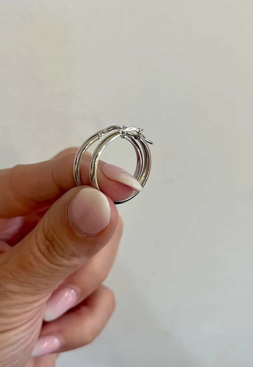 Hladké, lesklé kruhy z bieleho 14 karátového zlata vhodné na každodenné nosenie.