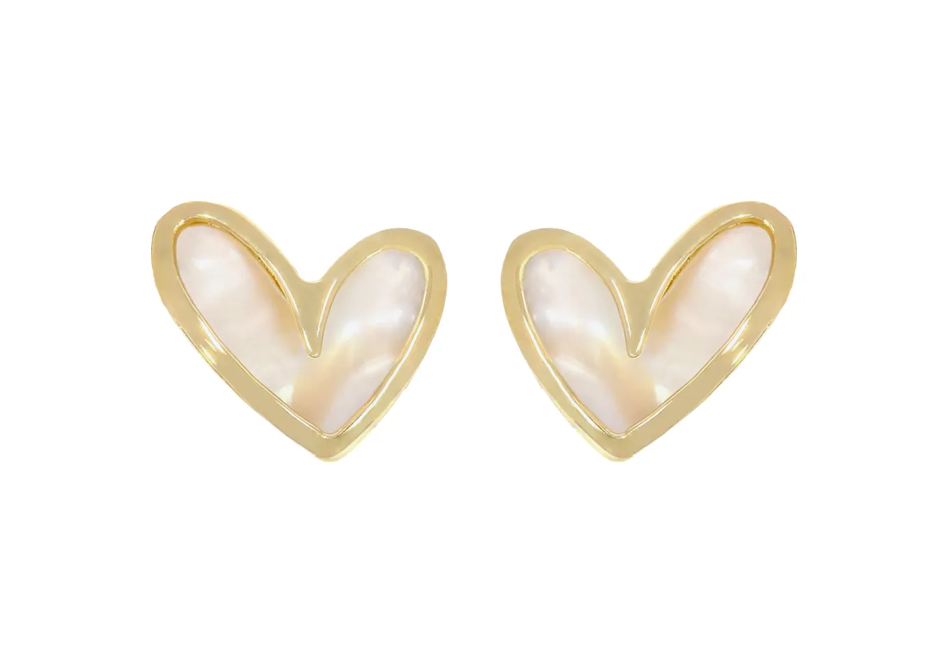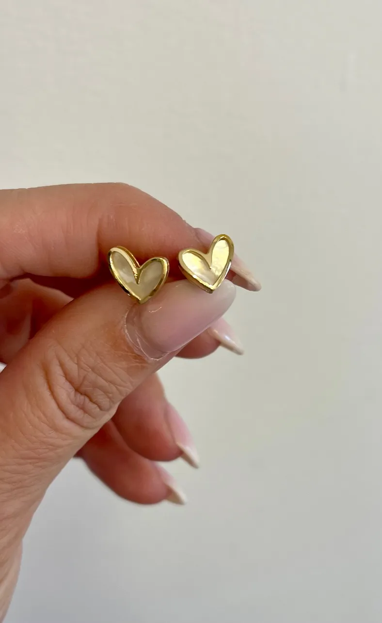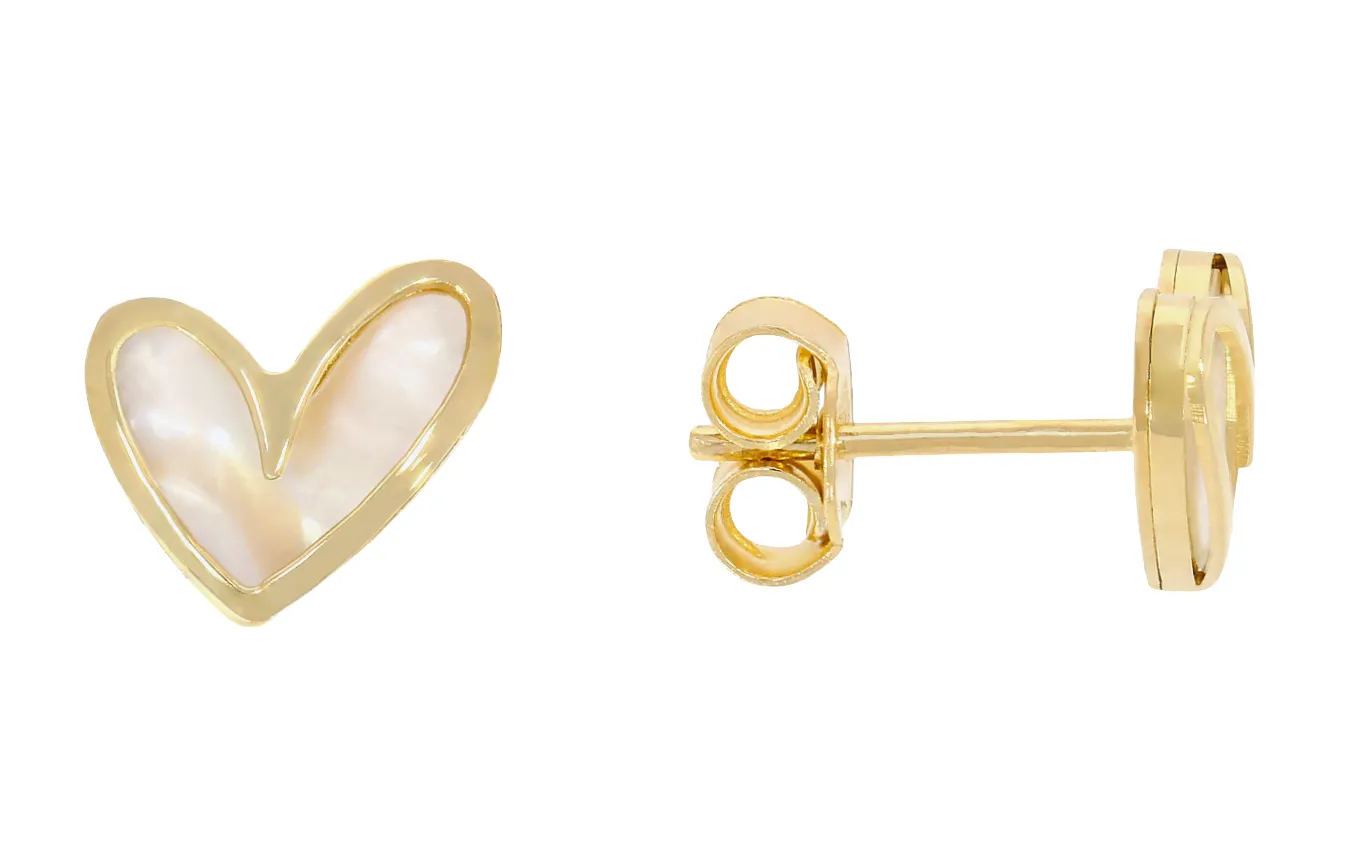 Pekné zlaté srdiečkové náušnice zdobené perleťou Vás očaria moderným dizajnom. Vhodné sú na každodenné nosenie a aj ako darček.