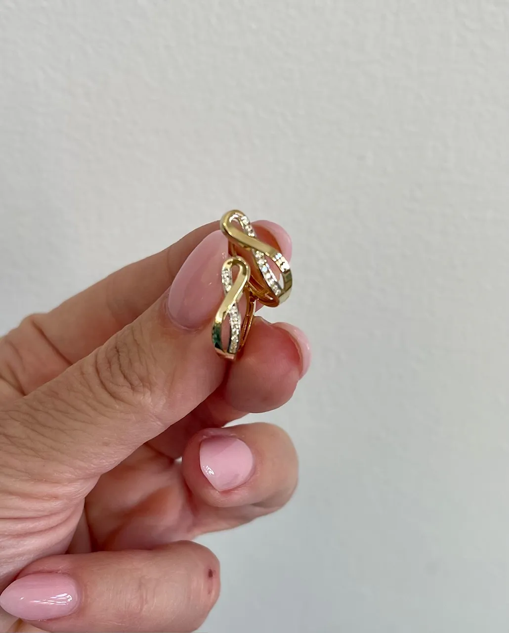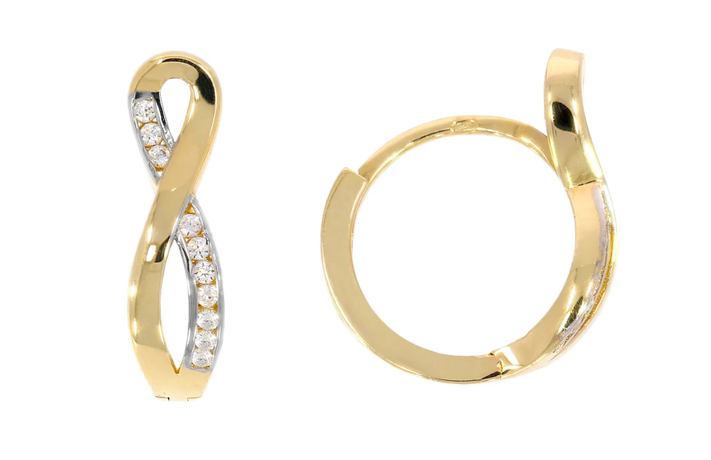 Zlaté krúžky vyrobené zo 14 karátového zlata zdobia biele zirkóny, ktoré im dodávajú neprehliadnuteľný lesk.