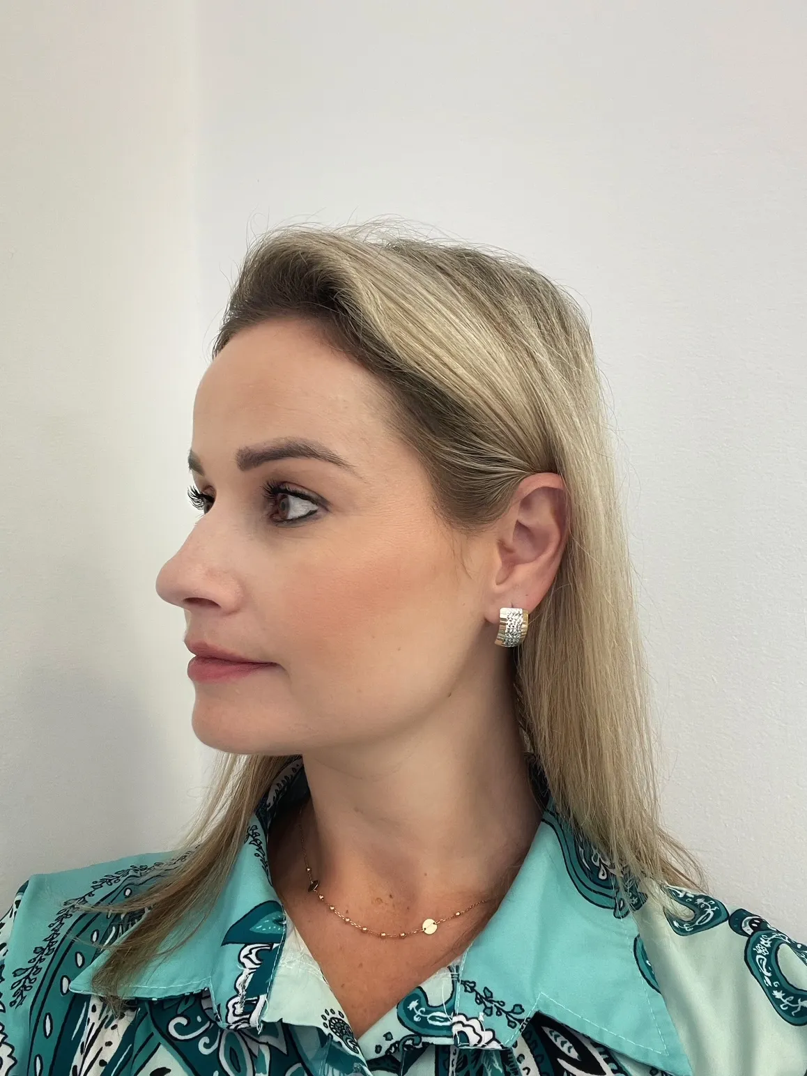 Výrazné zlaté náušnice.