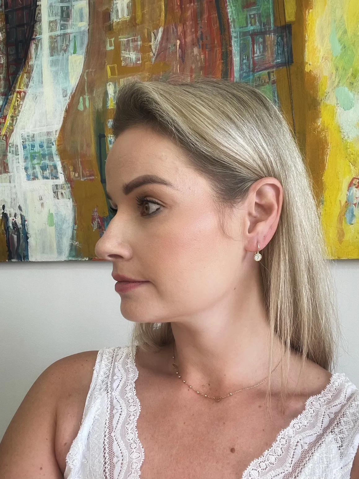Skutočne krásne zlaté náušnice zdobené množstvom zirkónov dokonale doladia tak bežný ako aj slávnostný outfit. Náušnice majú klasické patentové zapínanie a sú ideálne tiež ako darček. Spolu so Zlatou retiazkou 944 tvoria krásnu súpravu.