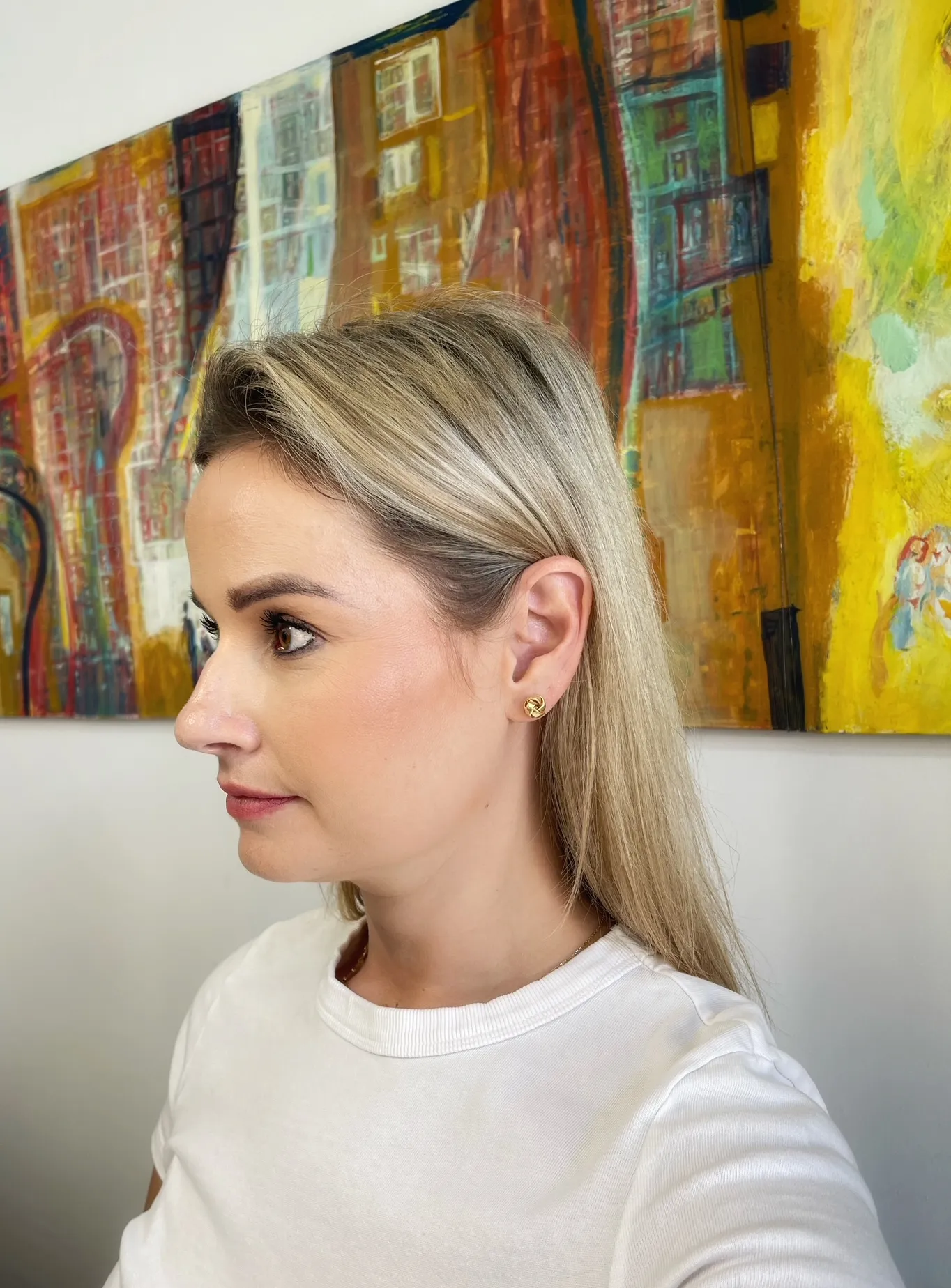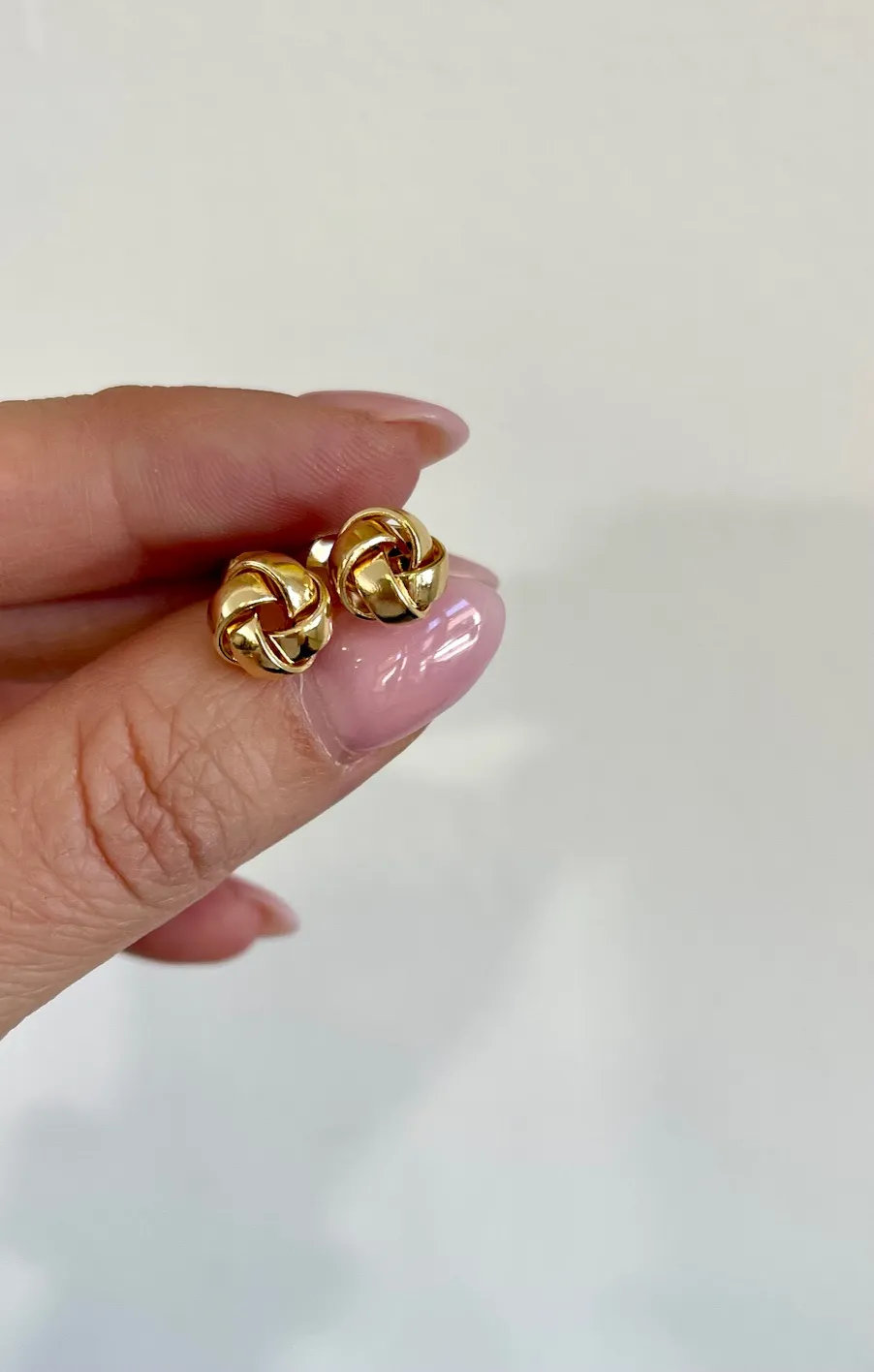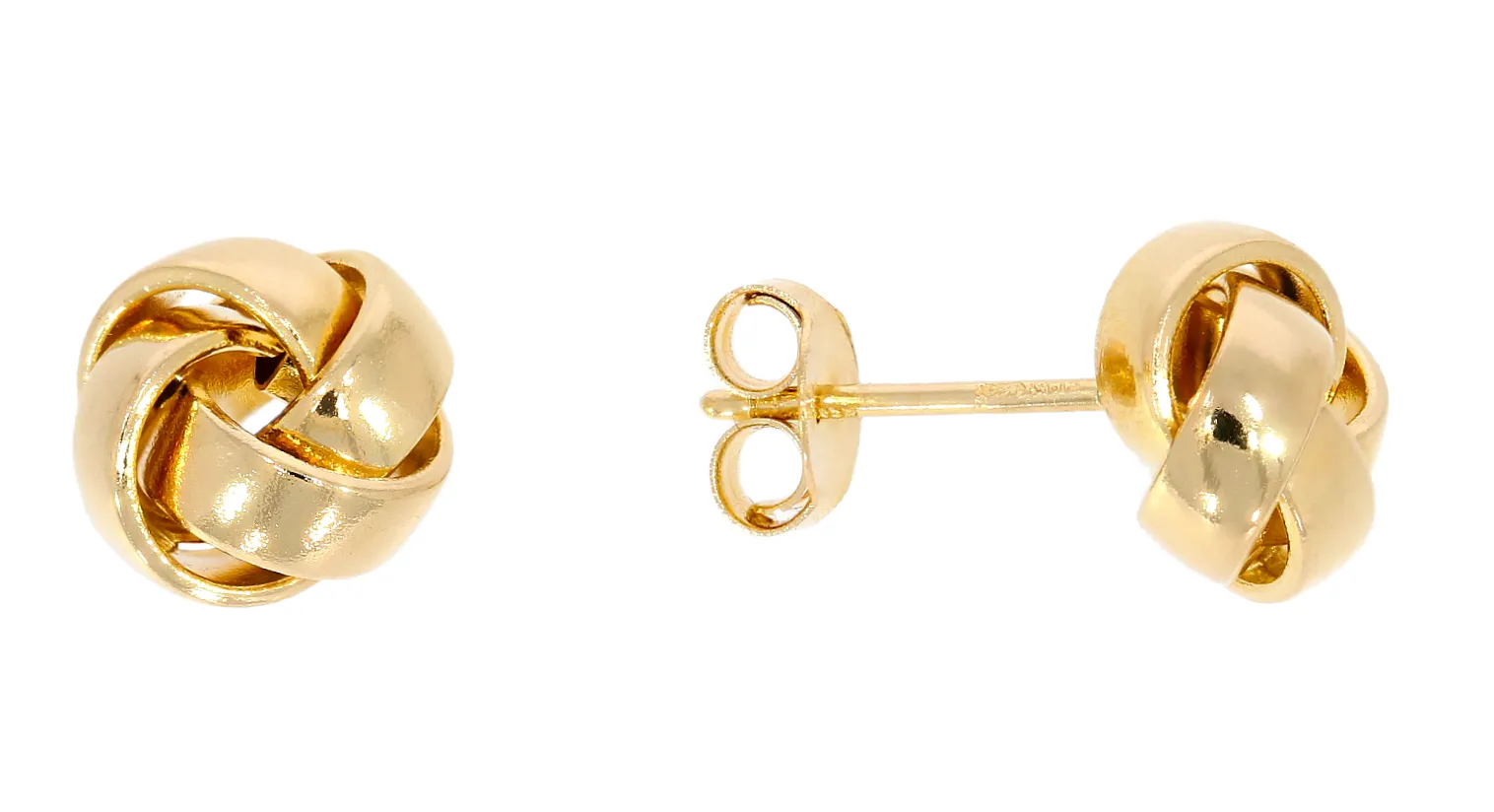 Krásne náušnice vyrobené zo žltého 14 karátového zlata v tvare uzlíkov s hladkou, lesklou povrchovou úpravou. Tieto napichovacie náušnice dokonale doladia každý outfit.