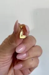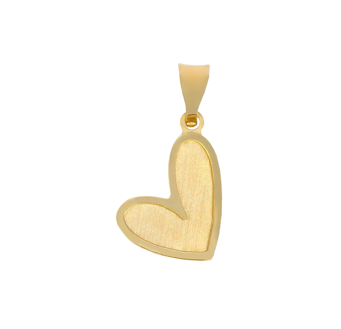 Pekný prívesok vyrobený zo žltého zlata v tvare moderného, šikmého srdiečka. Prívesok má lesklé kraje a matné vnútro, čo vytvára krásny kontrast.