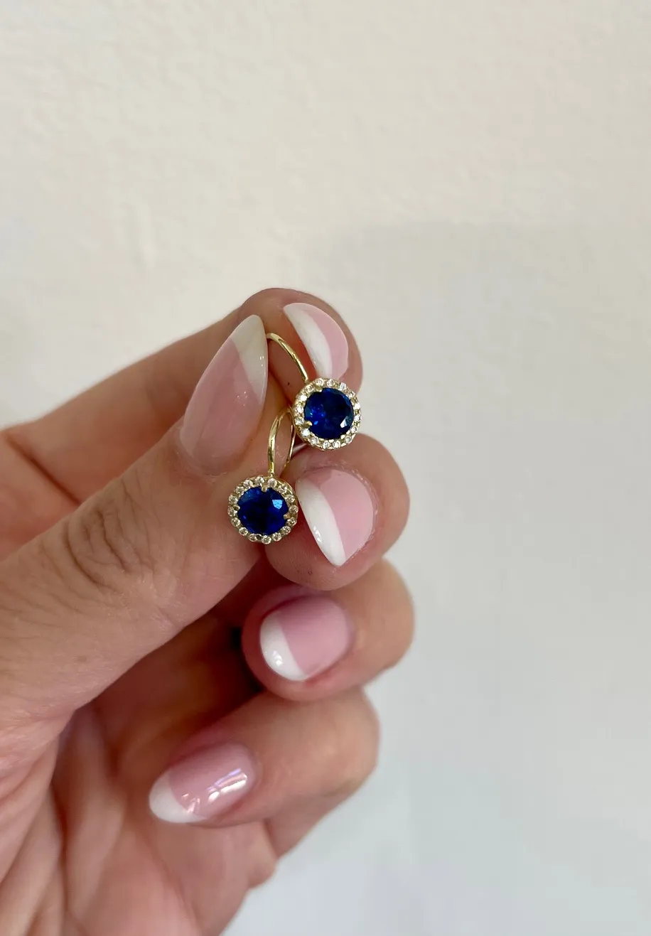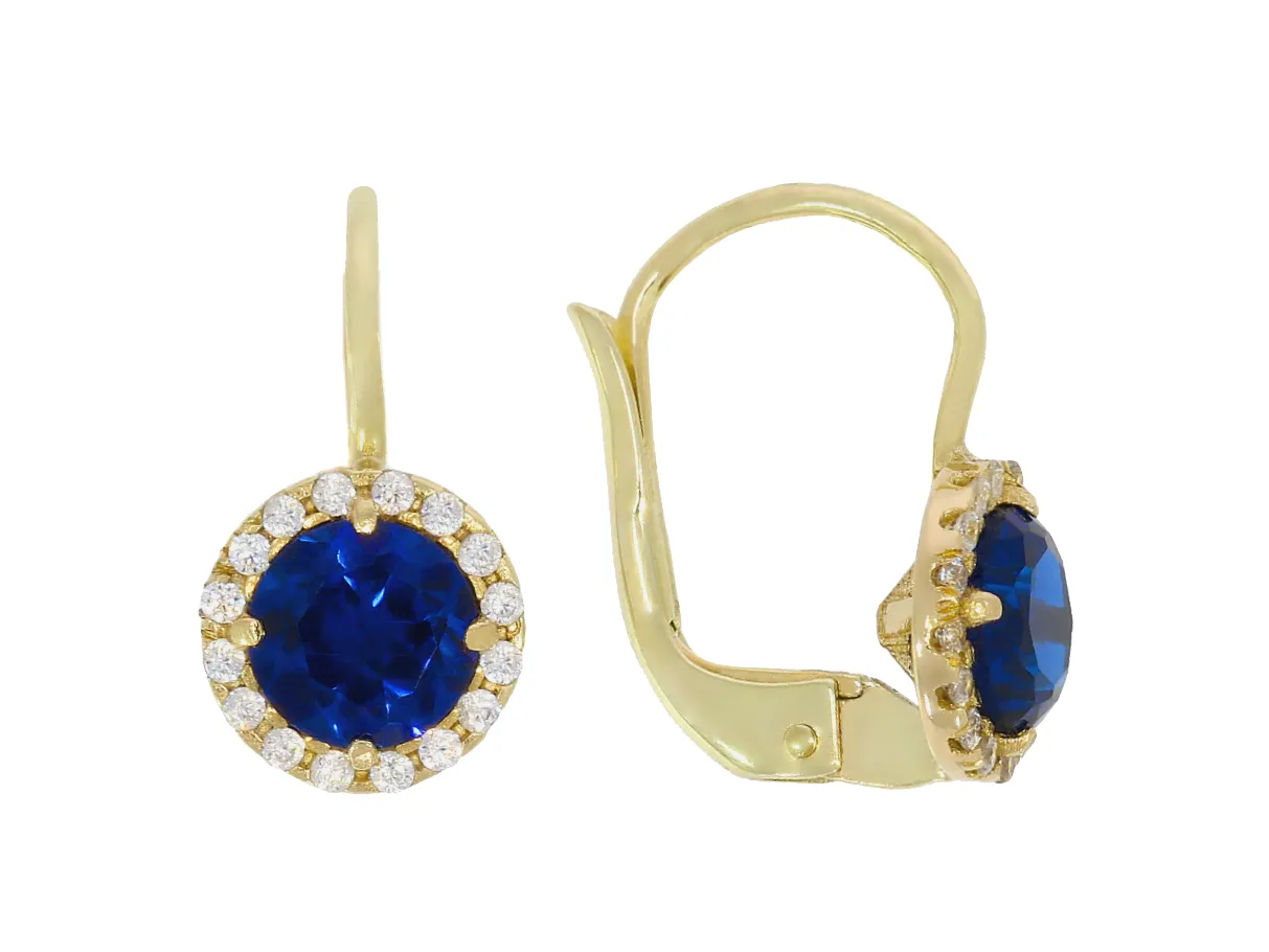 Krásne zlaté náušnice s klasickým patentom vyrobené zo žltého 14 karátového zlata. Náušnice zdobí dominantný sýtomodrý zirkón v centrálnej časti, ktorý dopĺňajú drobné biele zirkóny po jeho obvode. Náušnice sú svojou veľkosťou vhodné pre dievčatá alebo dámy s menšími ušnými lalokmi.