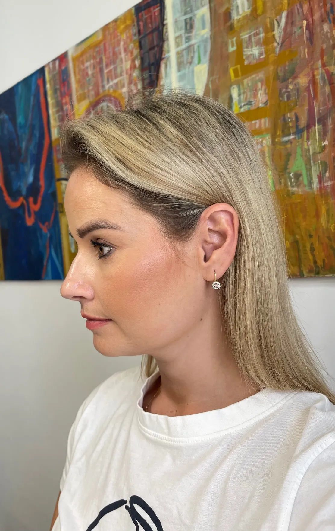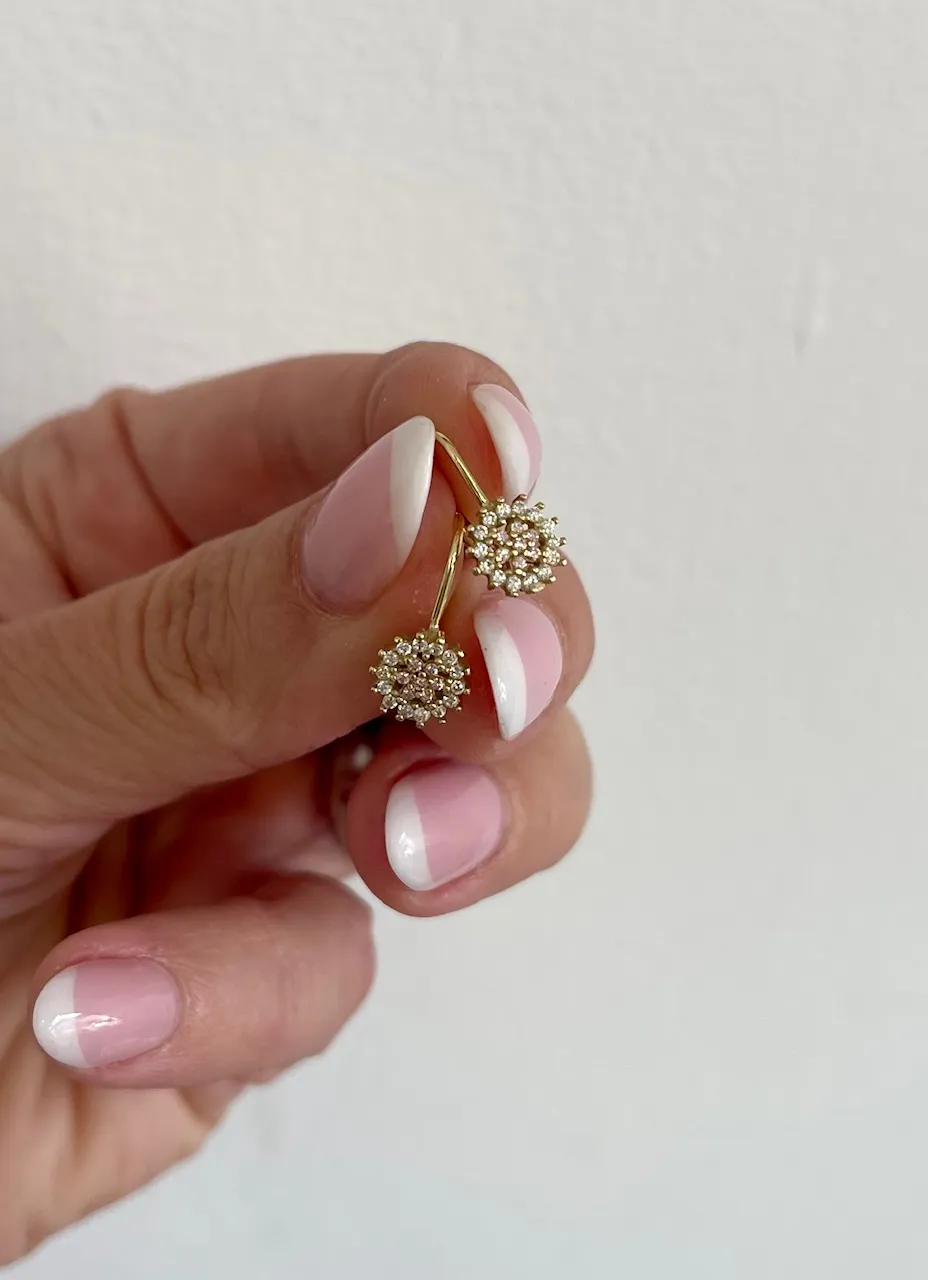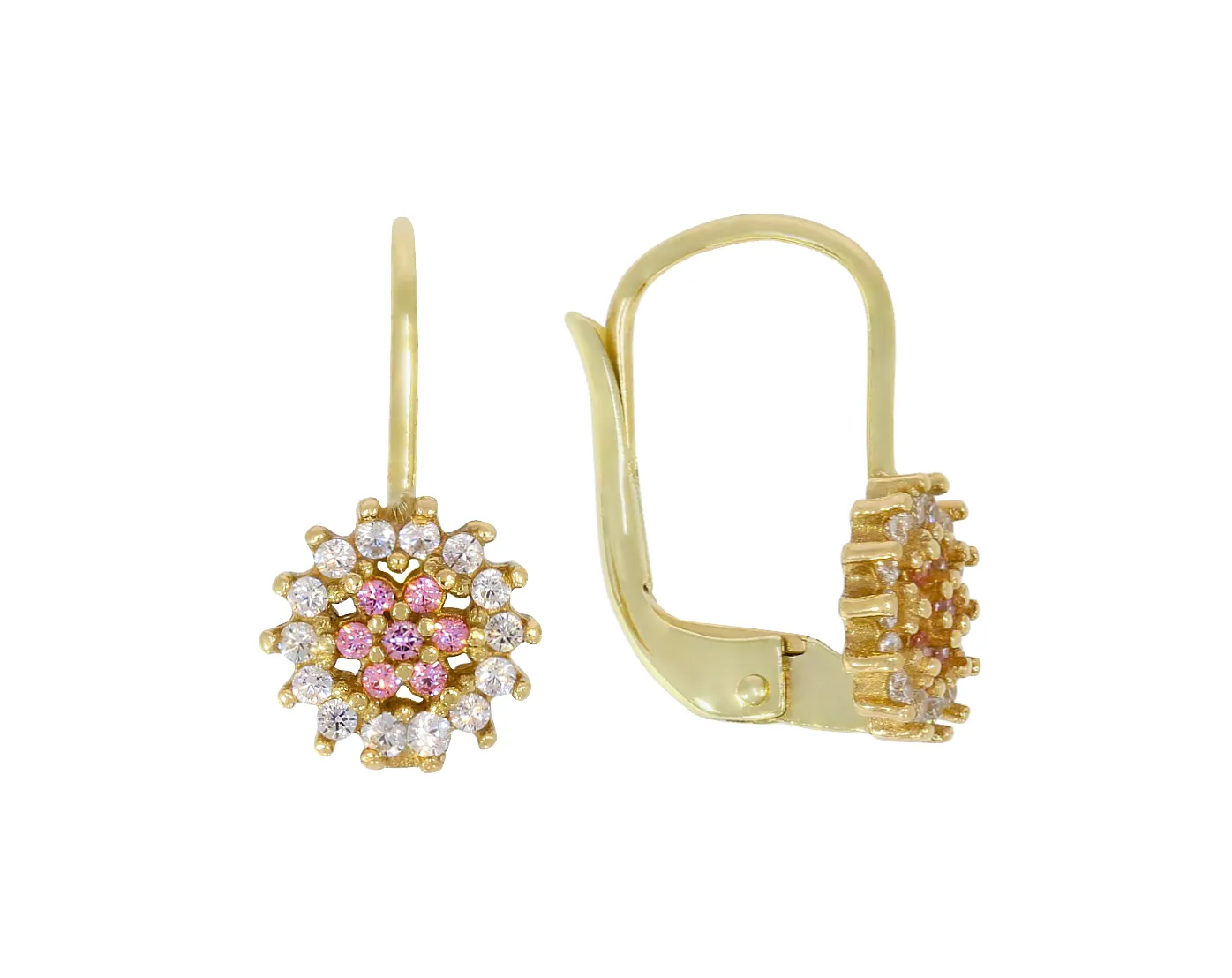 Pekné náušničky vyrobené zo žltého 14k zlata zdobia biele a ružové zirkóny, ktoré dodávajú šperku krásny lesk. Náušnice majú klasické patentové zapínanie a svojou veľkosťou sú vhodné pre dámy s menšími ušnými lalokmi alebo dievčatá.