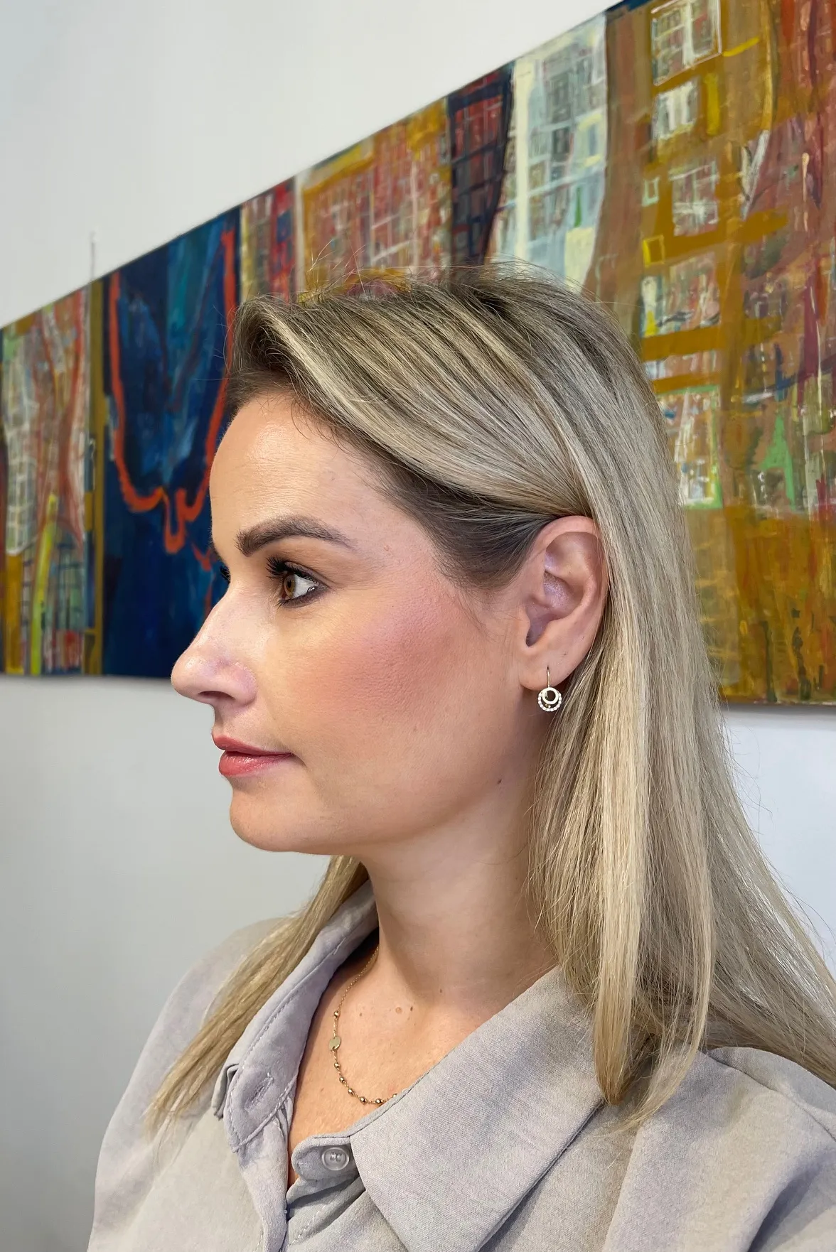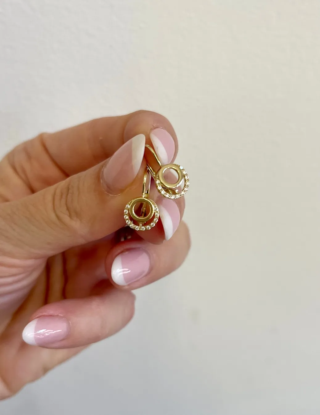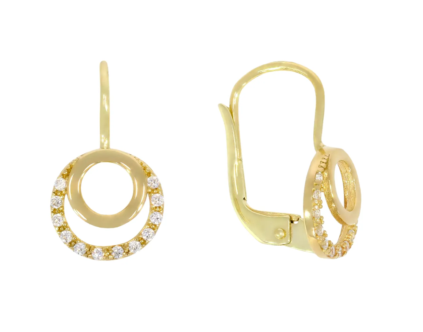 Pekné náušnice vyrobené zo žltého 14k zlata zdobené bielymi zirkónmi.