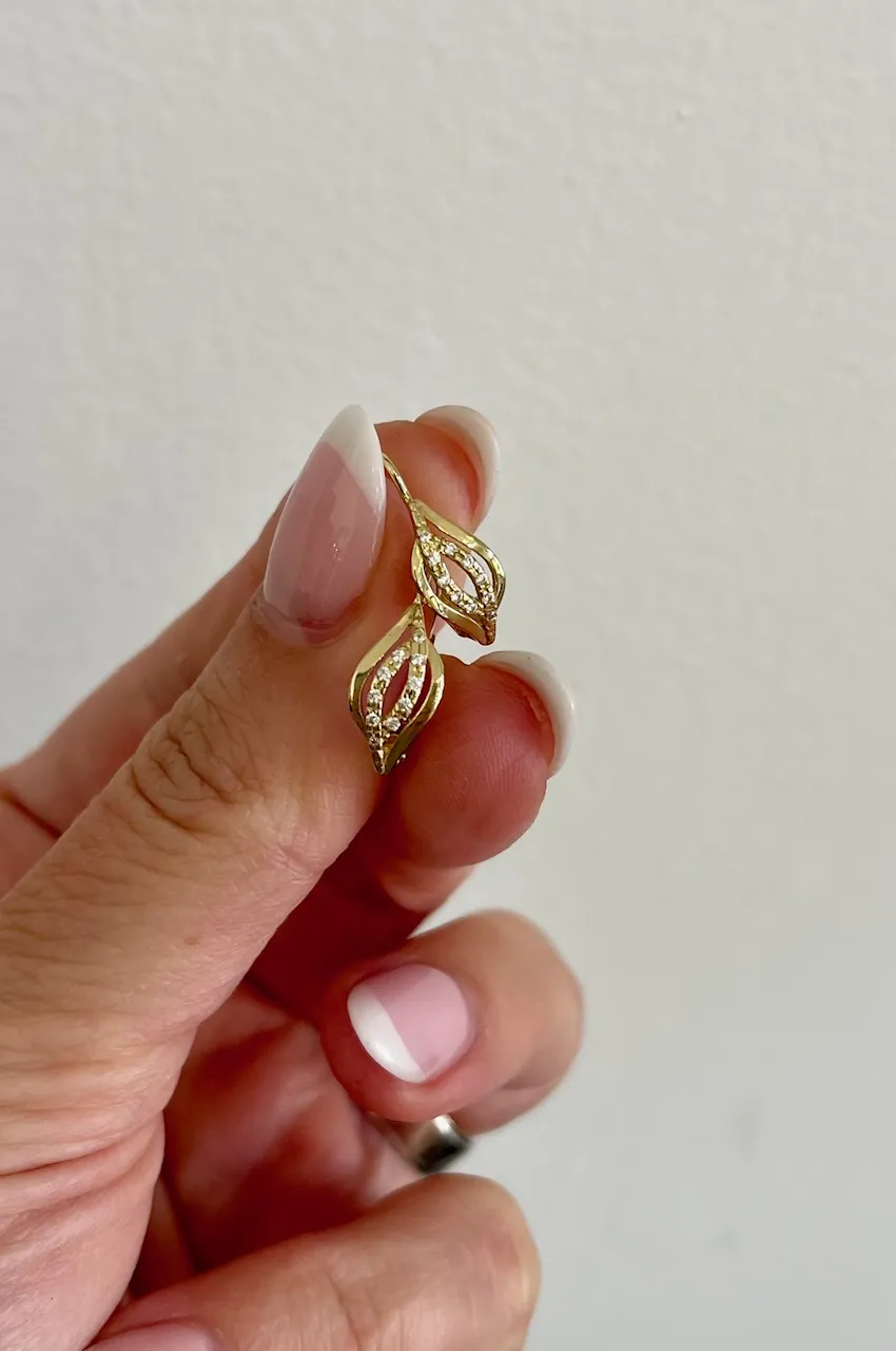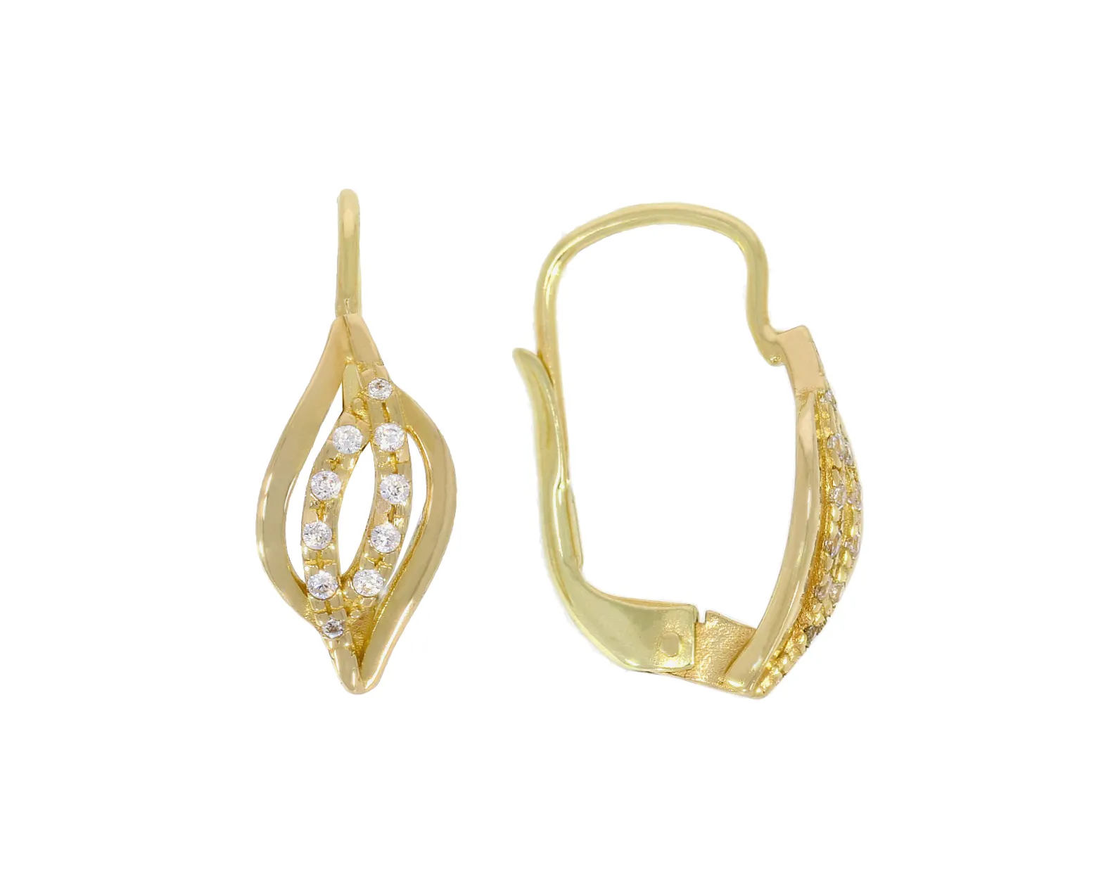 Pekné zlaté náušnice zdobené bielymi žiarivými zirkónmi.