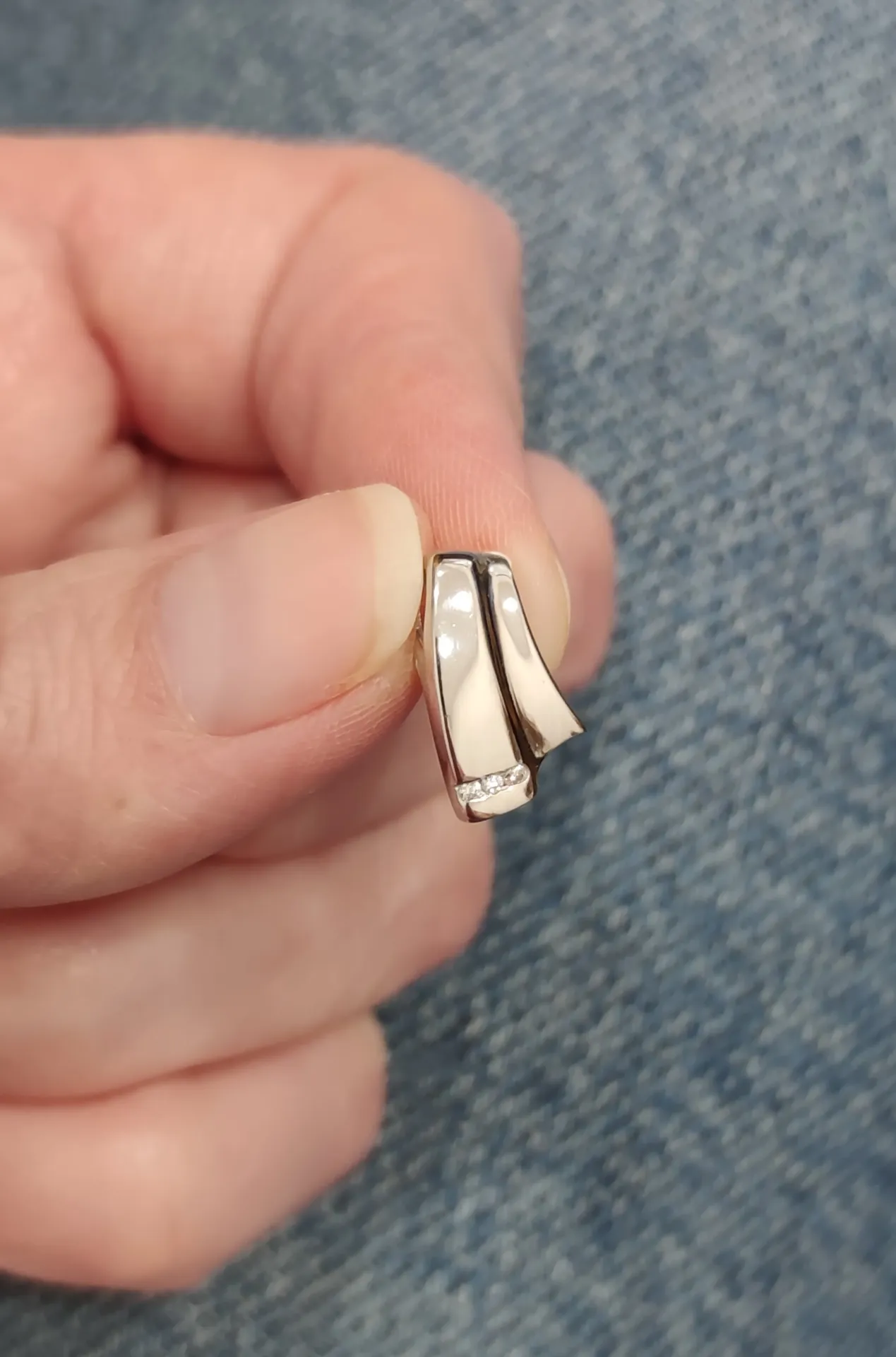 Elegantný prívesok z bieleho zlata zdobia 3 drobné biele zirkóny.