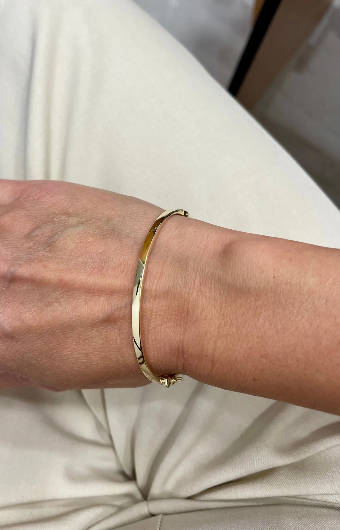 Hladký lesklý obručový náramok s hranatým prierezom je dokonalým darčekom pre dámu. Vďaka svojej univerzalite doplní každý outfit. Náramok má vnútorný obvod cca 17,5cm a bezpečné zapínanie s poistkou.