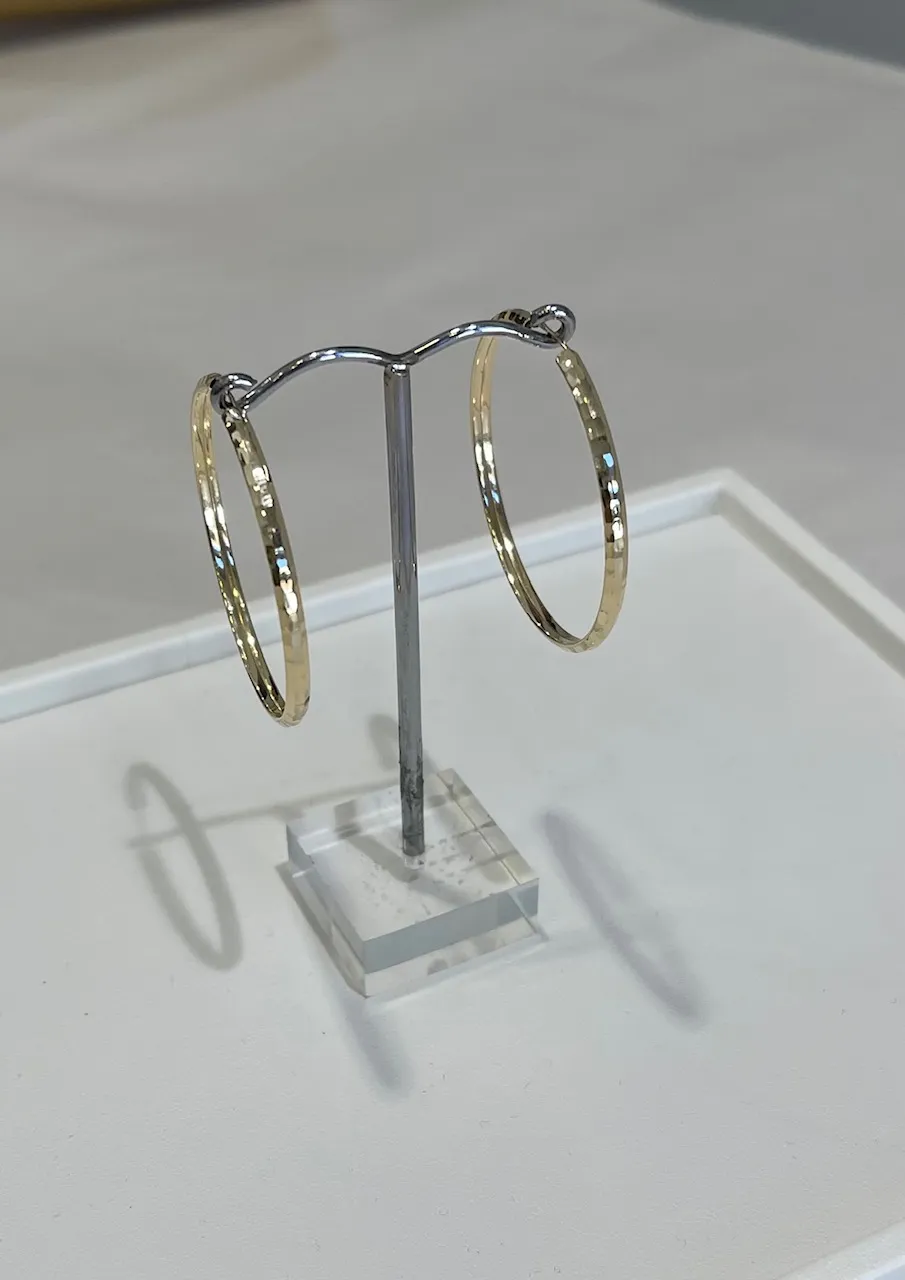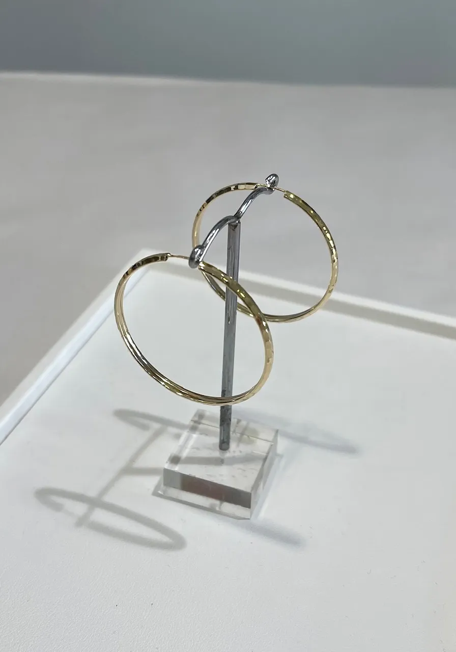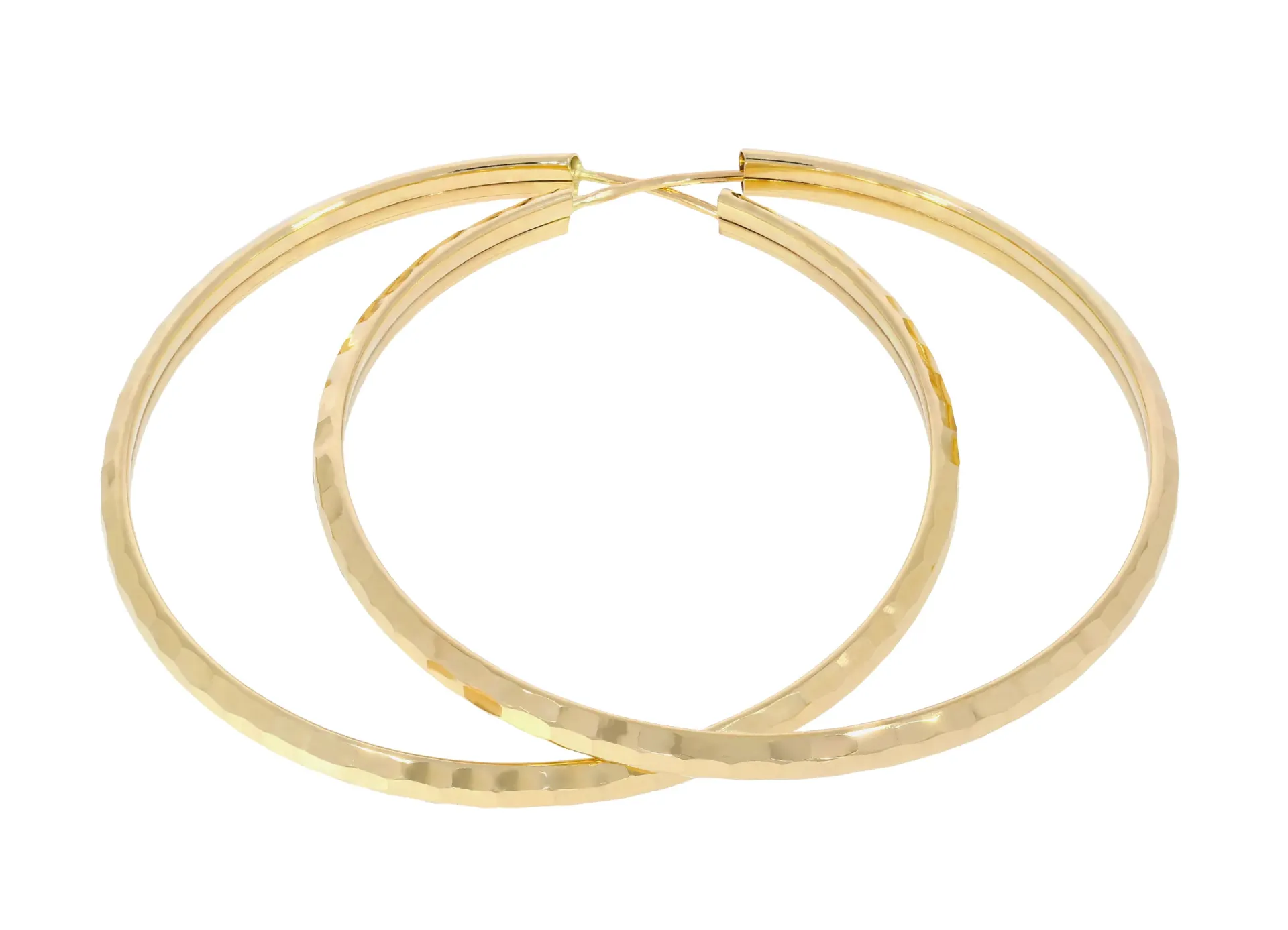 Zlaté náušnice vyrobené v tvare kruhov zo žltého 14k zlata. Náušnice majú klasické kruhové zapínanie "do seba" a lesklú povrchovú úpravu.
