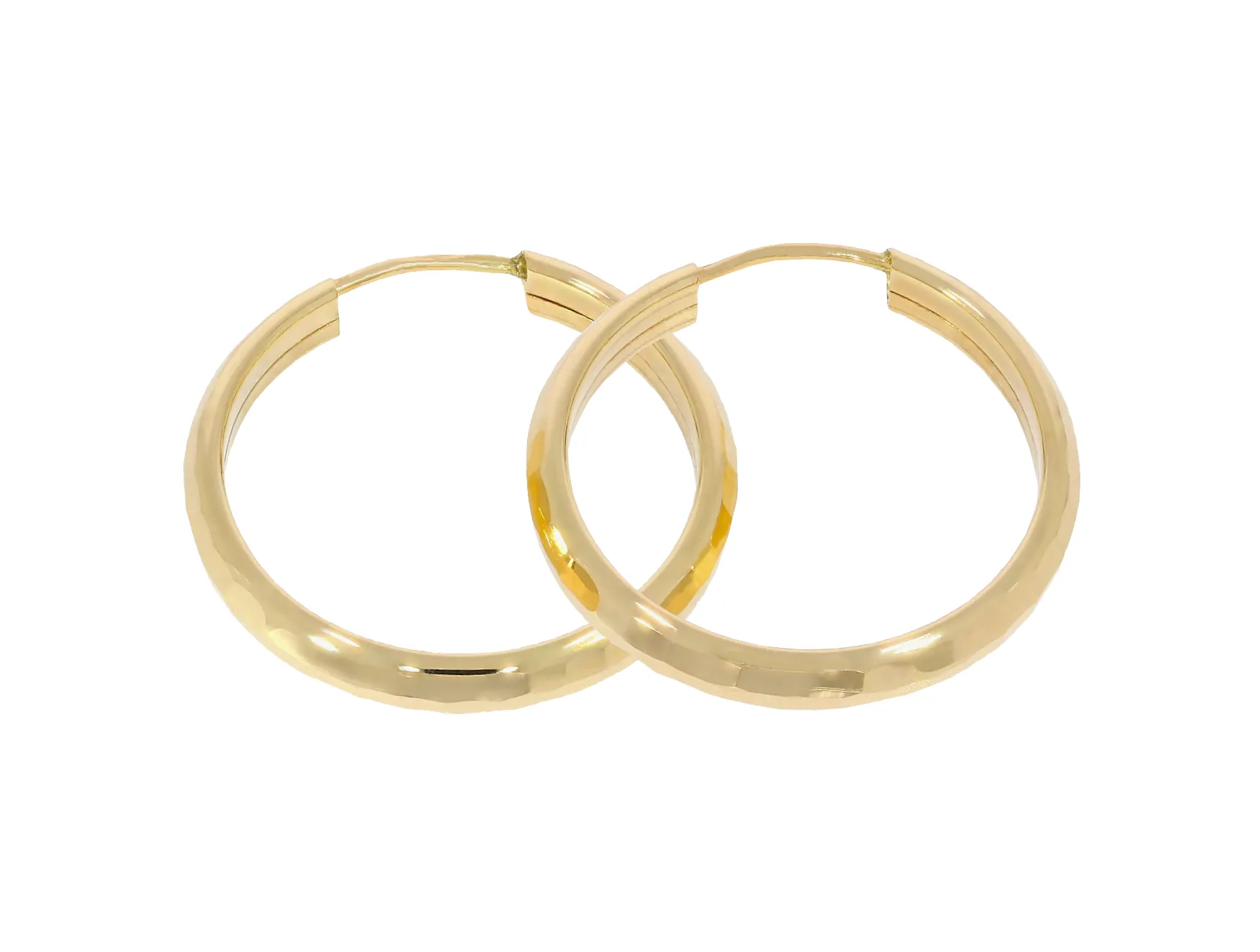 Zlaté gravírované krúžky vyrobené zo žltého 14k zlata majú klasické kruhové zapínanie "do seba". Náušnice krásne doplnia Váš každodenný outfit.