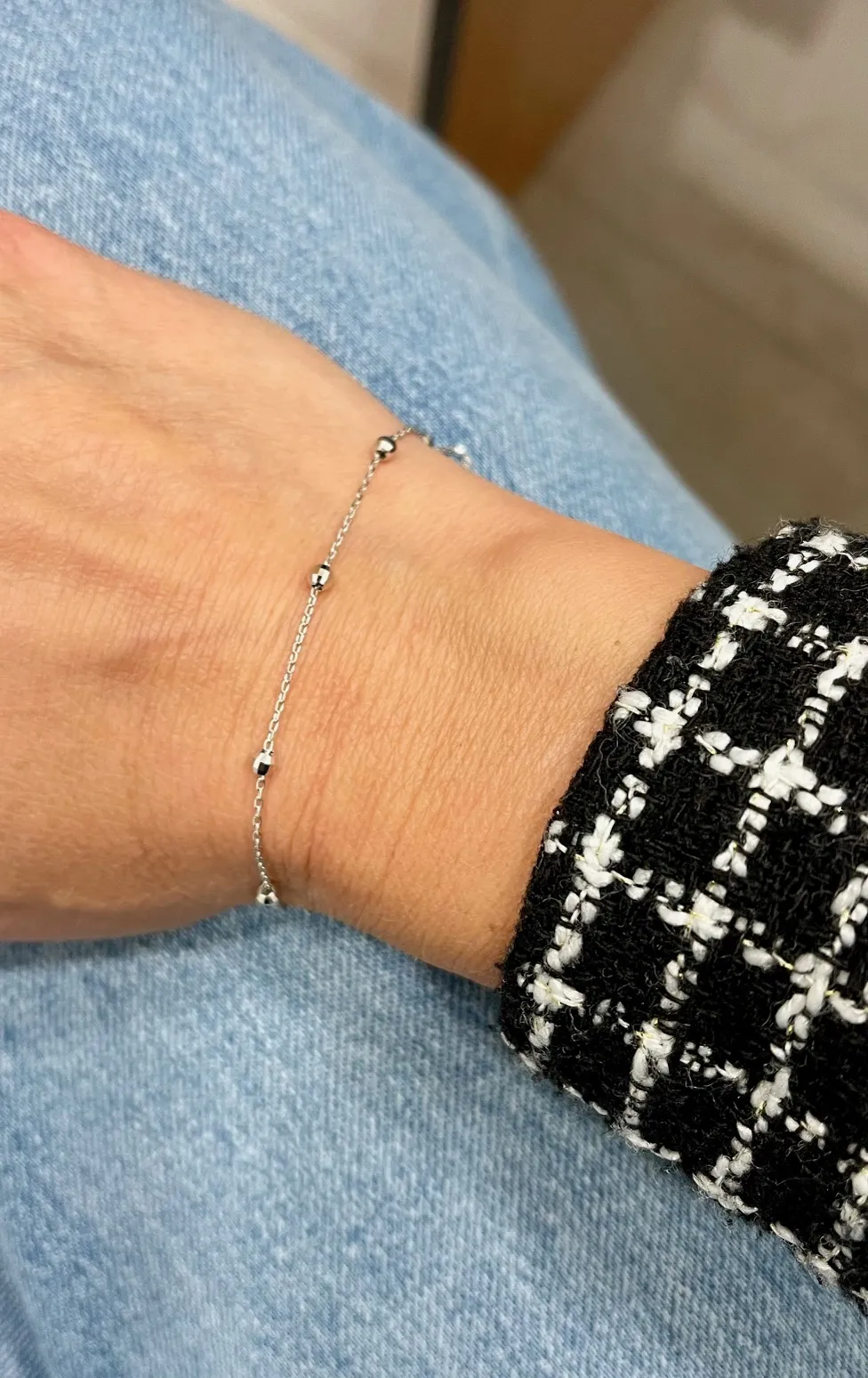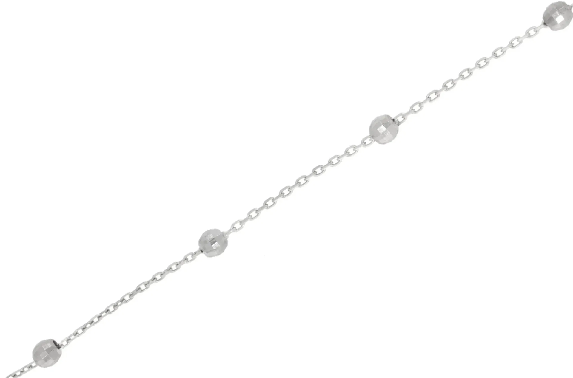 Pekný náramok vyrobený z bieleho zlata zdobený 7 gravírovanými guľkami s priemerom 3mm. Náramok má dĺžku regulovateľnú v rozmedzí 2cm. Zapínanie má tvar pérového krúžku.
