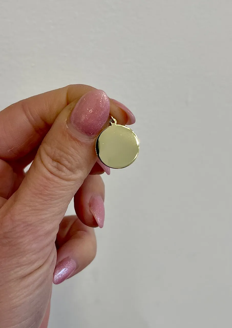 Pekný zlatý prívesok s hladkou, lesklou povrchovou úpravou, ktorý je vhodný na gravírovanie.