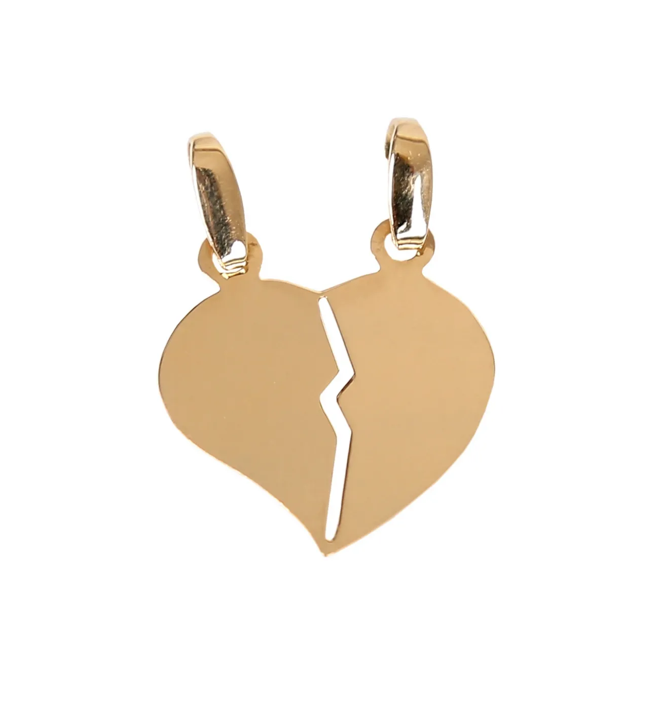 Romatnický prívesok v podobe rozlamovacieho srdiečka je vhodným darčekom pre páry. Kazdá strana srdca má samostaný krúžok na prevlečenie na retiazku, takže rozdelením vzniknú dva samostatné prívesky. Šperk je vhodný tiež na gravírovanie napríklad začiatočných písmen.