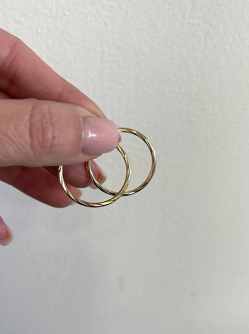 Pekné zlaté kruhové náušnice zdobené gravírovaným vzorom.