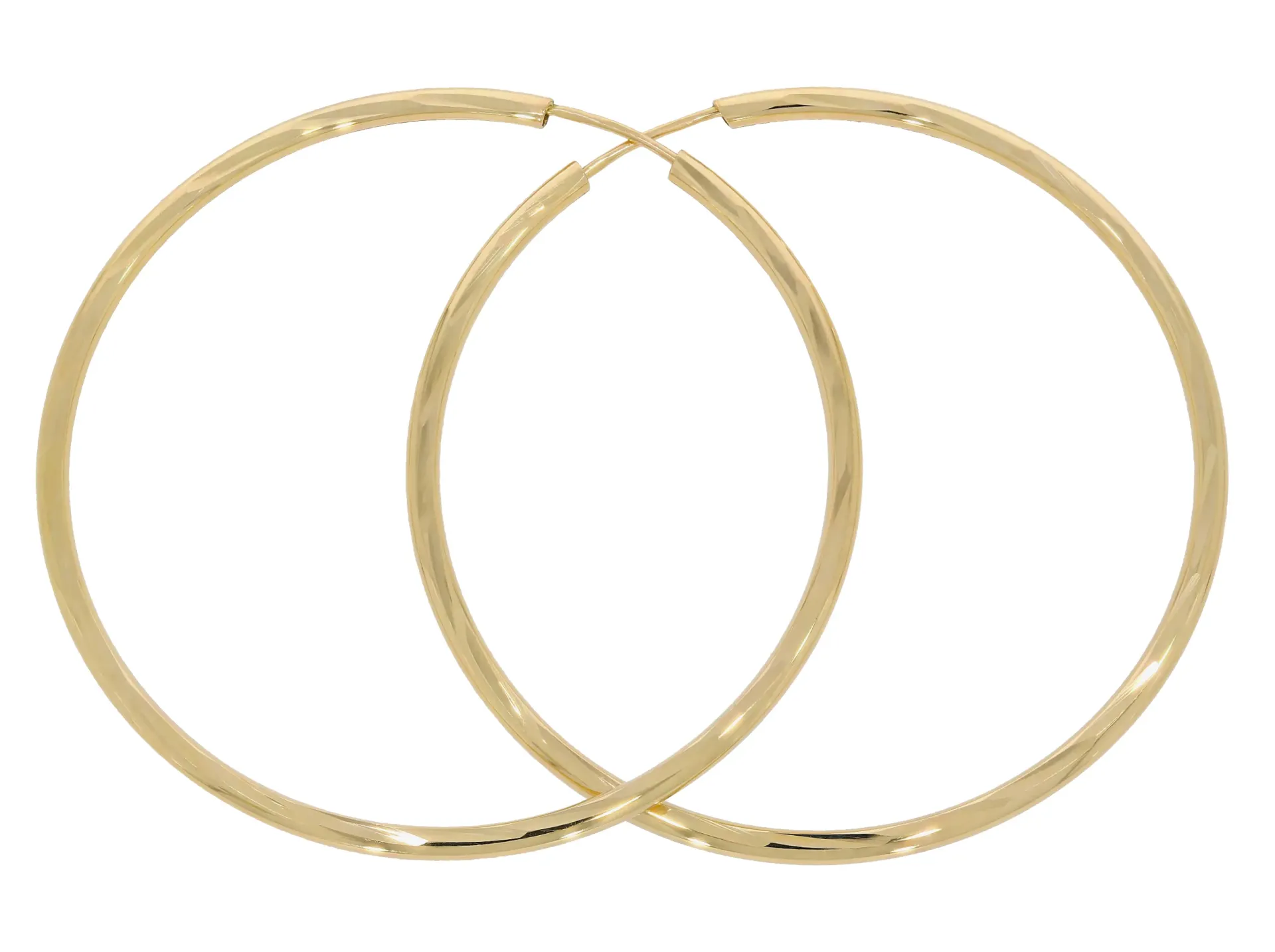 Krásne zlaté kruhové náušnice vyrobené zo žltého 14 karátového zlata zdobené precíznym gravírovaným vzorom.