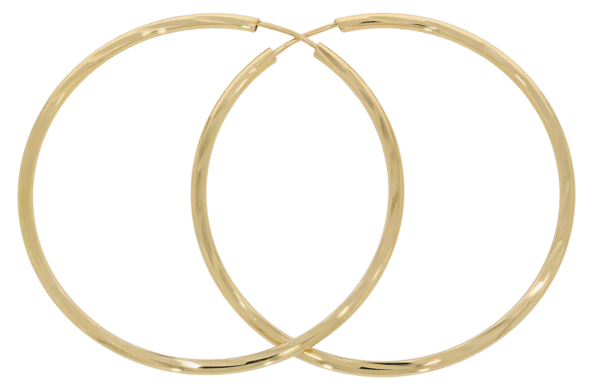 Kruhové náušnice vyrobené zo žltého 14 karátového zlata zdobené precíznym gravírovaným vzorom.