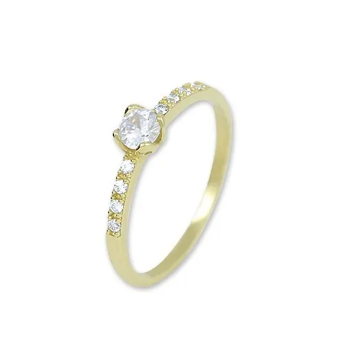 Pekný prsteň zdobený bielymi zirkónmi vyrobený zo žltého 14 karátového zlata.