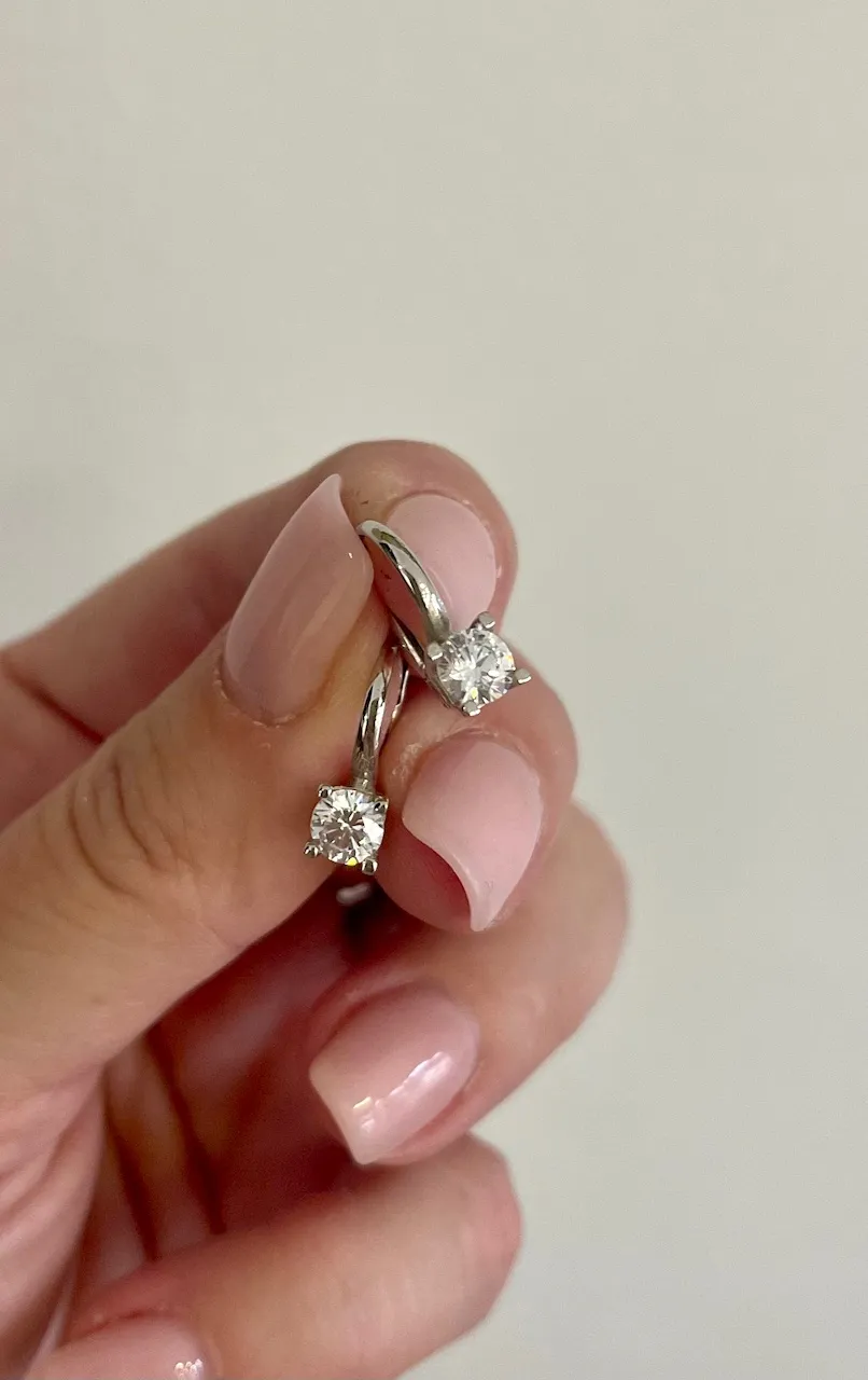 Elegantné klasické náušnice z bieleho zlata zdobí jeden výraznejší zirkón. Náušnice sú vhodné na každodenné nosenie, ale aj na špeciálnu príležitosť.