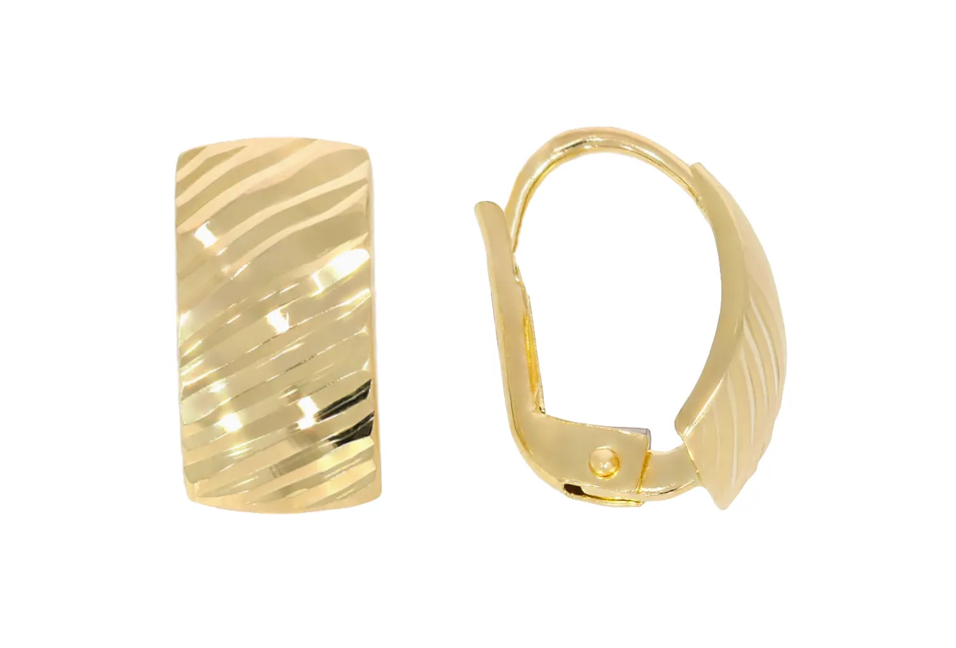 Zlaté náušnice na klasické zapínanie sú zdobené šikmým gravírovaným vzorom.