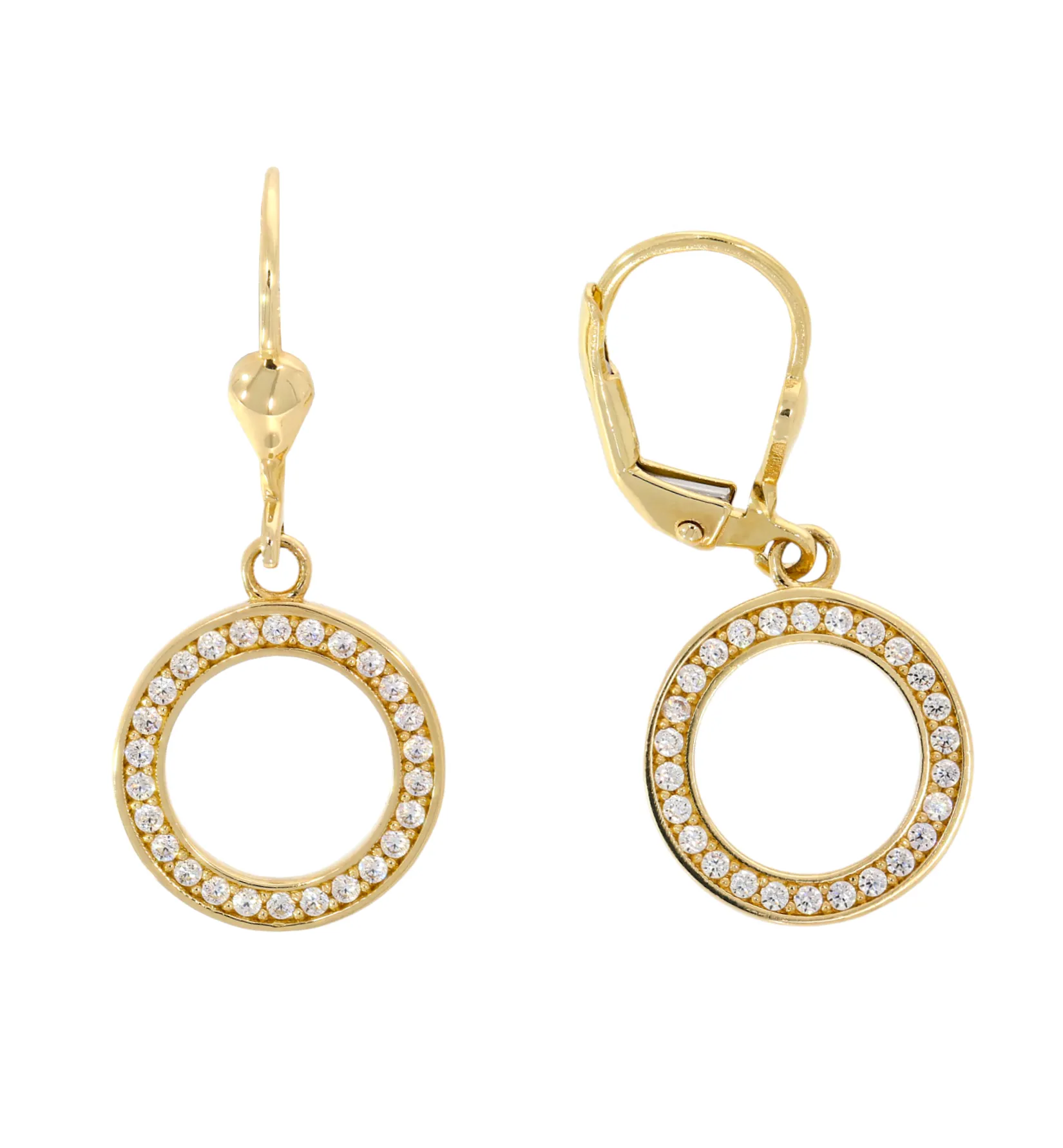 Krásne visiace náušnice vyrobené v tvare krúžkov, ktoré dekorujú biele zirkóny. Tento krásny šperk dokonale doladí každý outfit a je vhodný aj ako darček.