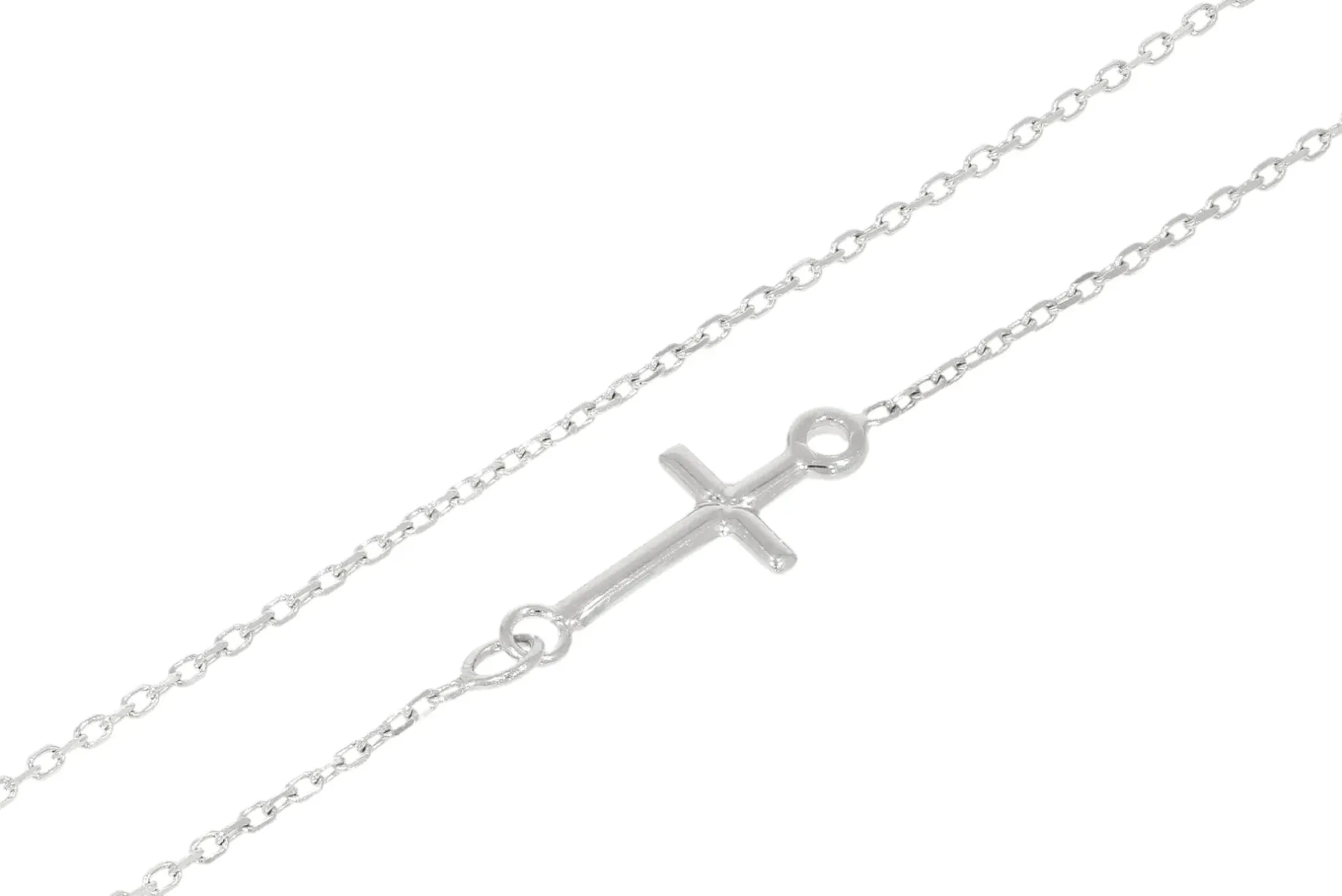Pekná retiazka z bieleho 14k zlata tvorená z klasických plných očiek, zdobená hladkým, lesklým krížikom. Prívesok má rozmery 13x6 mm a je zapracovaný do retiazky. Použité zapínanie má tvar pérového krúžku. Retiazka má dĺžku regulovateľnú v rozmedzí 3cm.