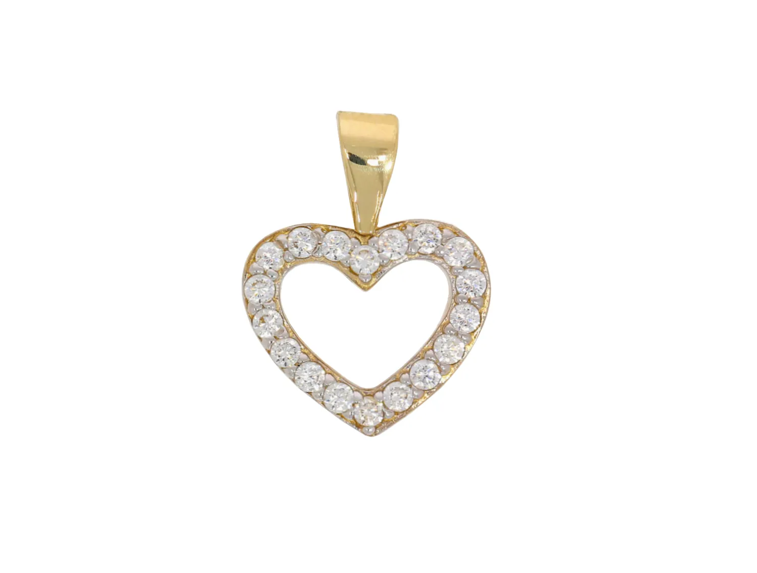 Krásny prívesok vyrobený v tvare sdiečka zdobí biele tónovanie zlata a žiarivé zirkóny. Šperk je vyrobený zo žltého 14 karátového zlata a je vhodný ako darček, ktorý obdarovanú zaručene poteší.