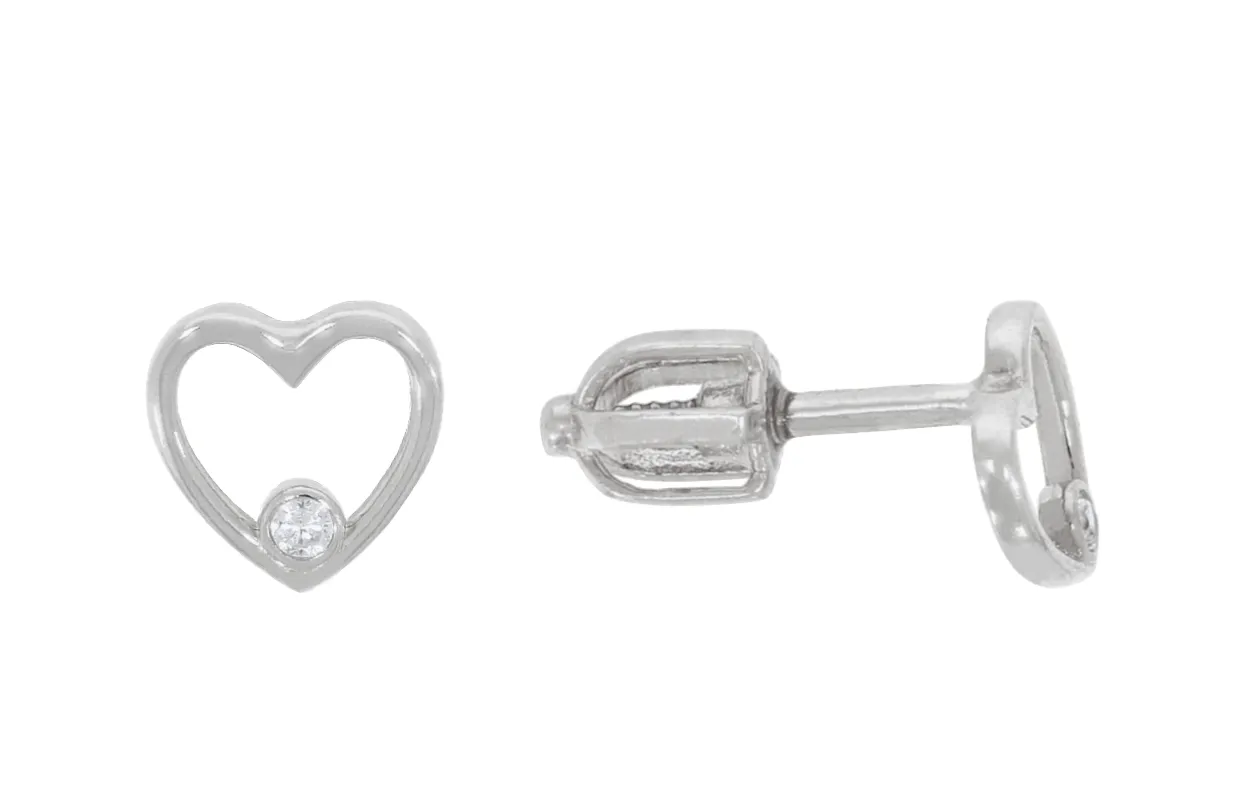 Srdiečka z bieleho zlata so šrobovacím zapínaním.